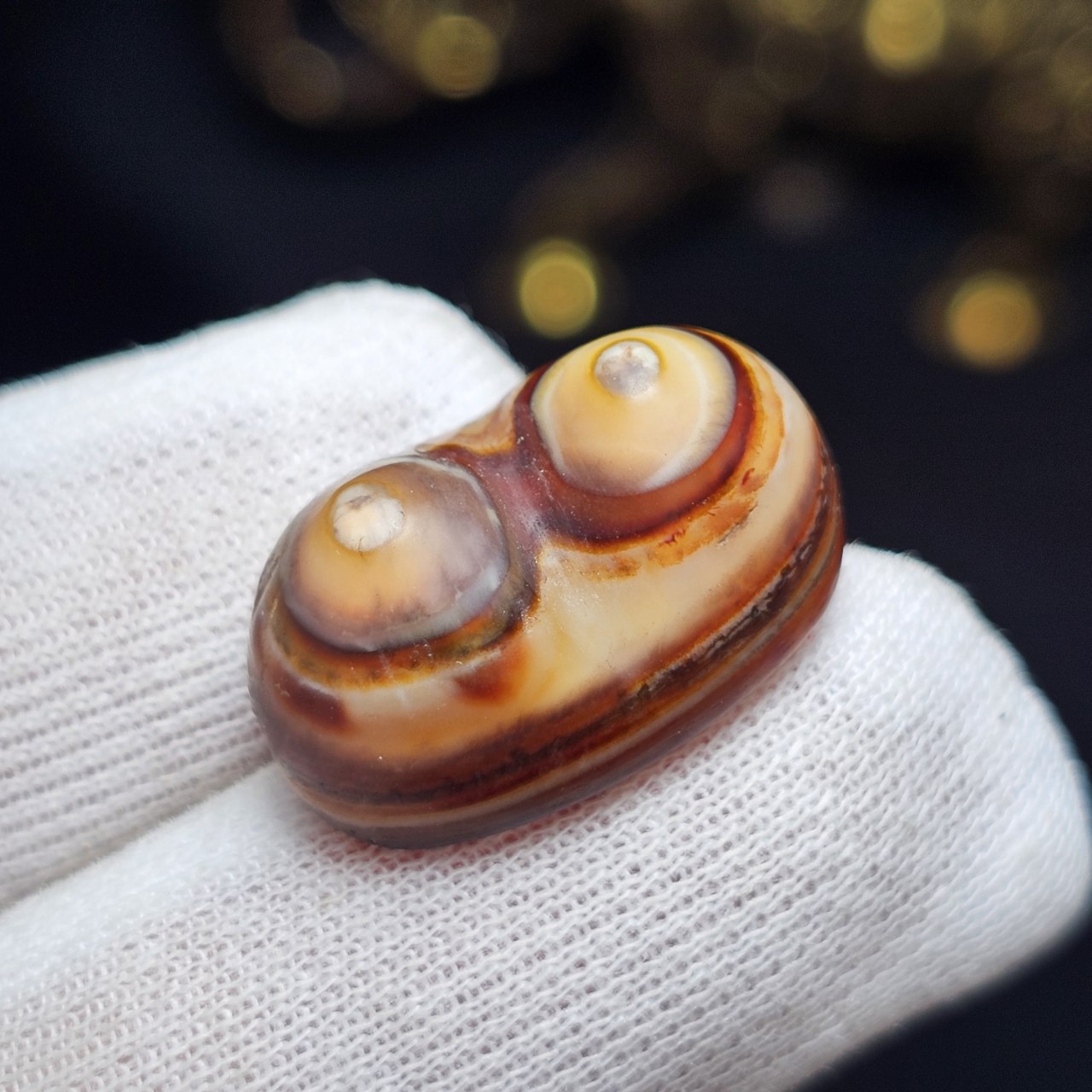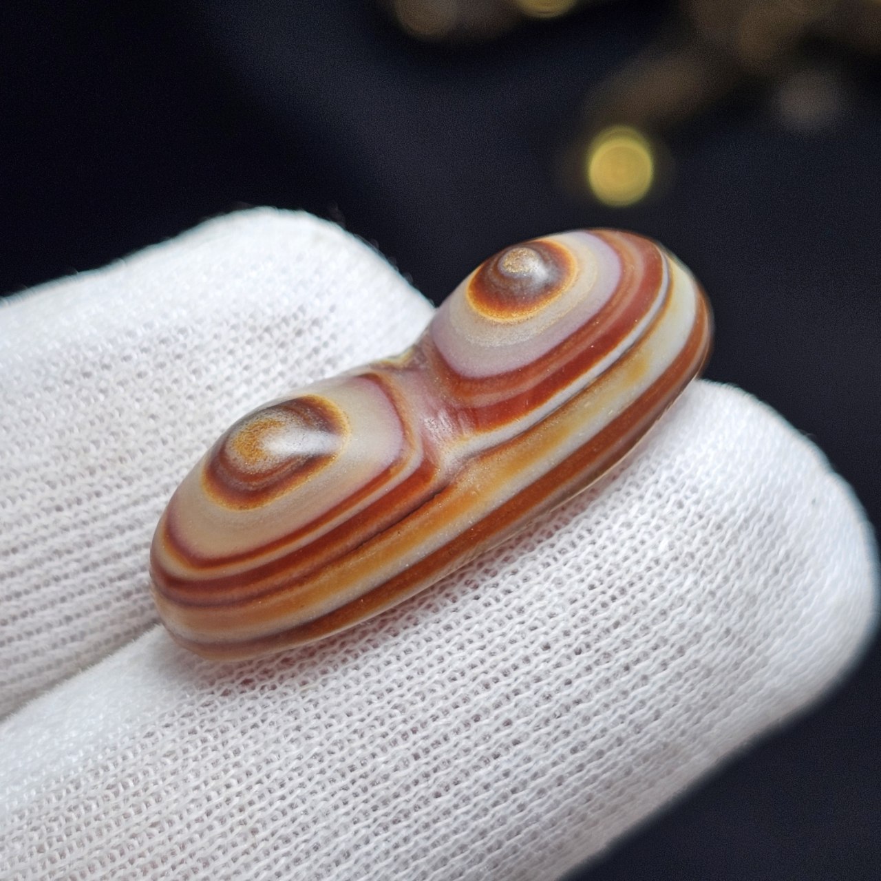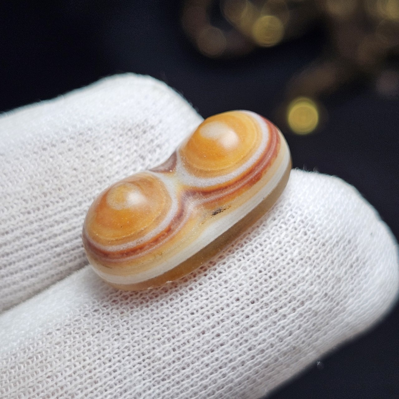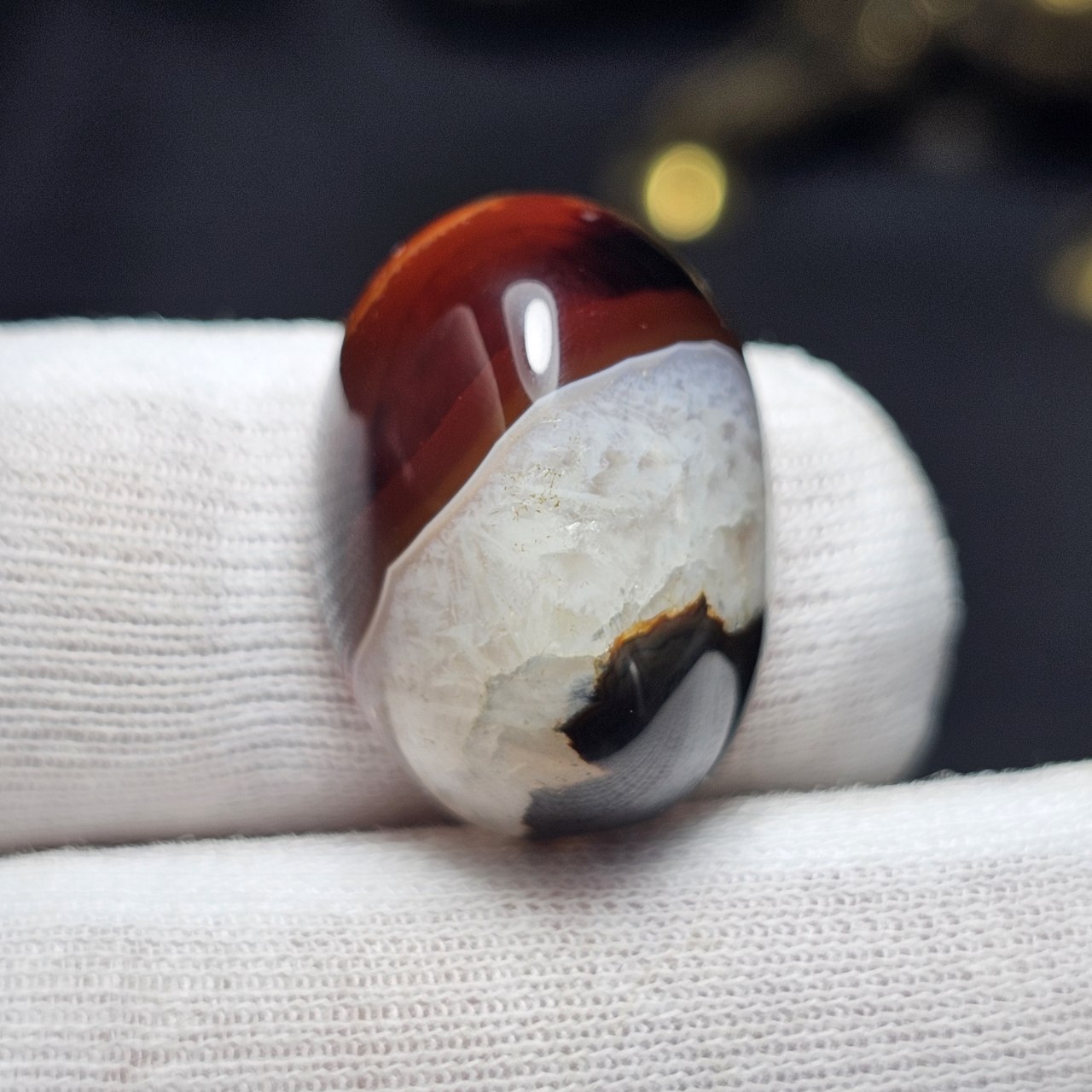 نگین سنگ عقیق سه پوست باباقوری معدنی تراش کهنه دو کوهانه کد 37257