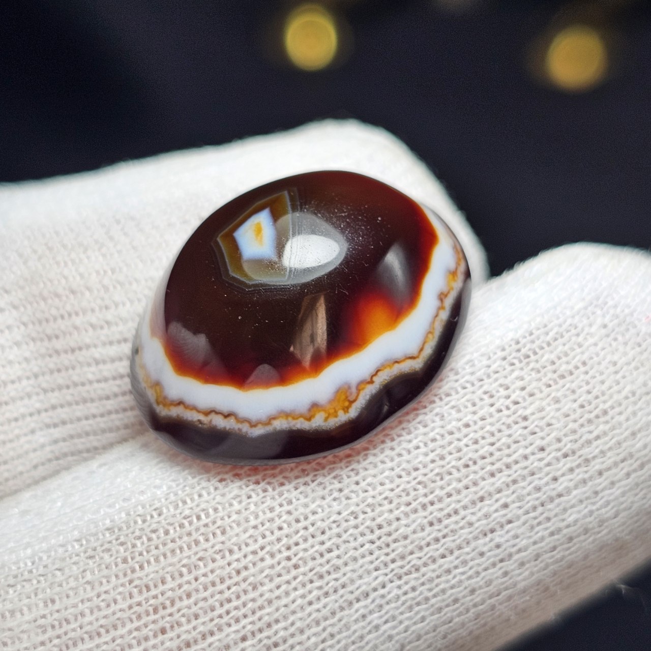 نگین سنگ عقیق سه پوست باباقوری معدنی تراش کهنه دو کوهانه کد 37255