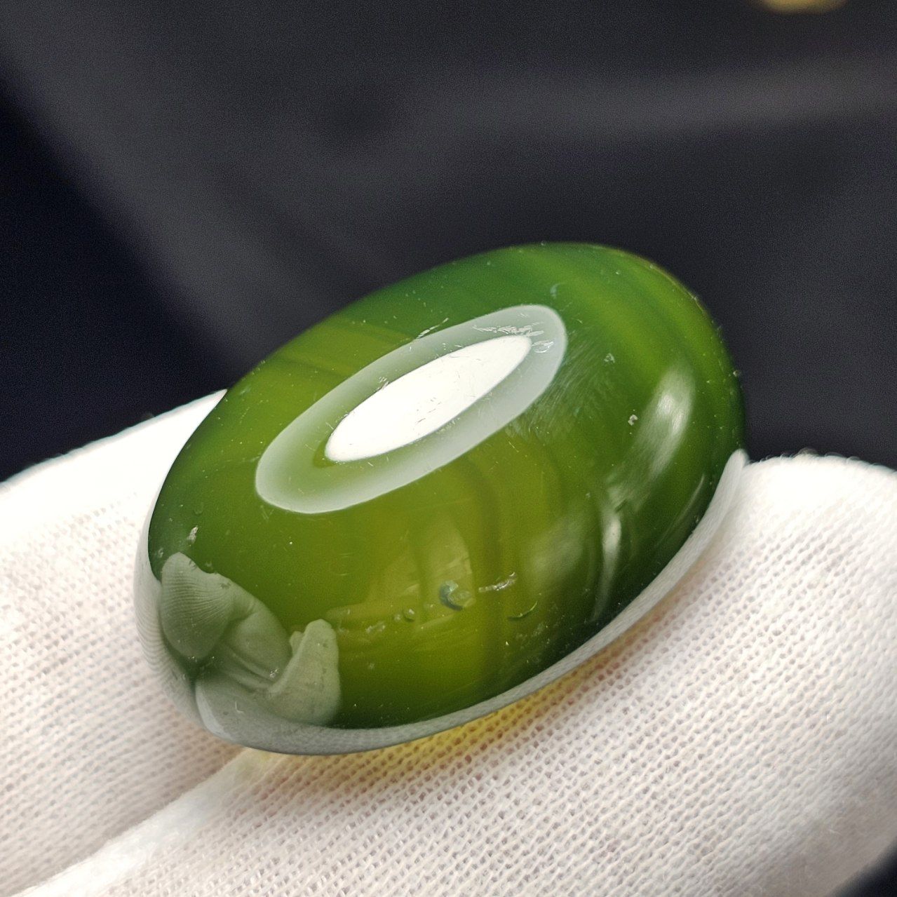 نگین درشت سنگ عقیق سبز رگه سلیمانی معدنی کد 38120
