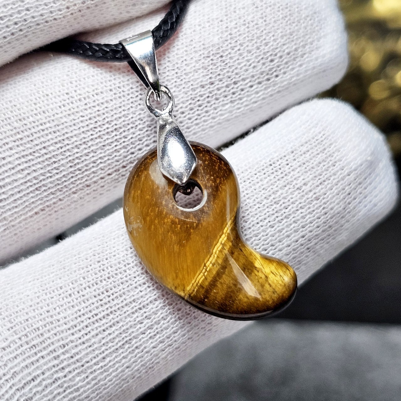 آویز گردنبند سنگ طبیعی چشم ببر معدنی کد : 36688