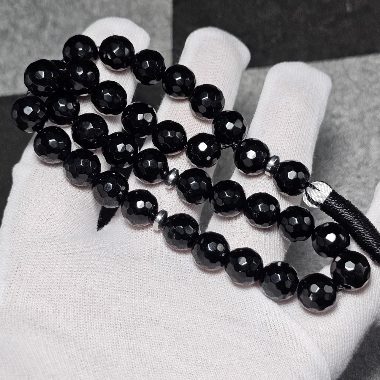 تسبیح ۳۳ دانه سنگ اونیکس معدنی تراش دار کد 37087