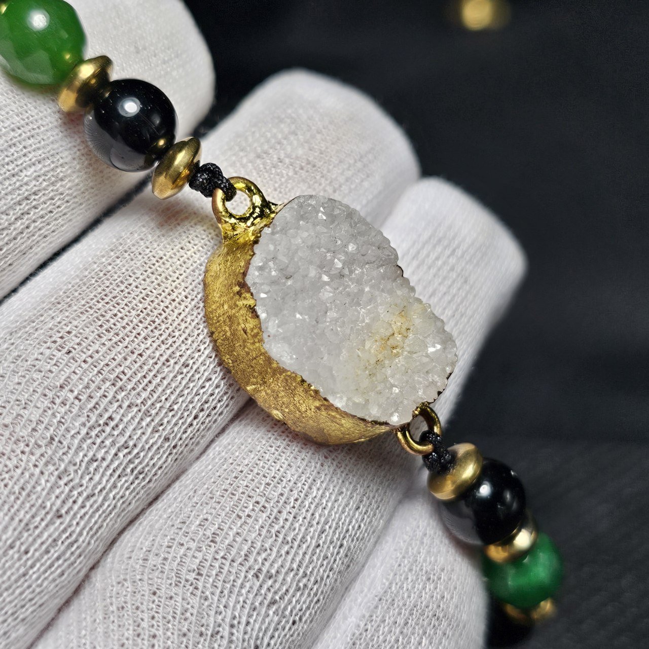دستبند سنگ طبیعی ژئود معدنی با مهره جید و اونیکس کد 37472