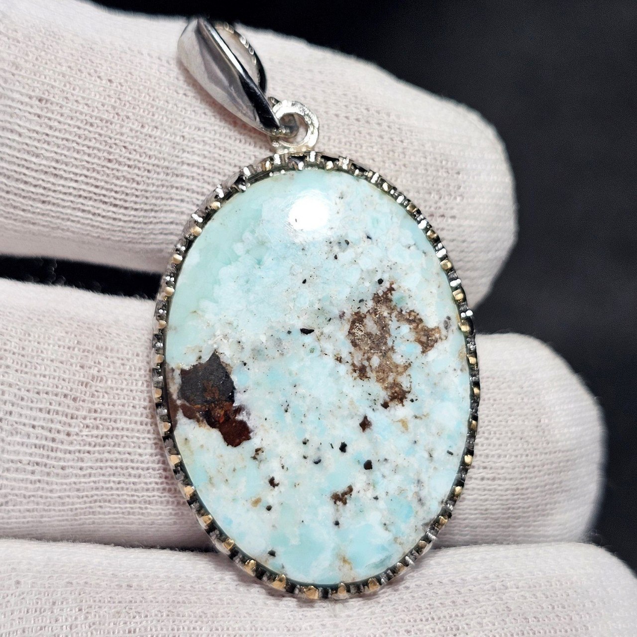 آویز گردنبند نقره روس با سنگ طبیعی فیروزه درشت معدنی نیشابور کد 37489