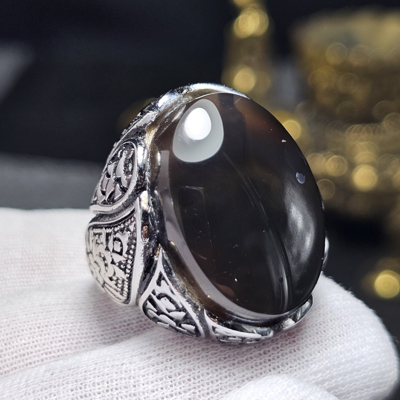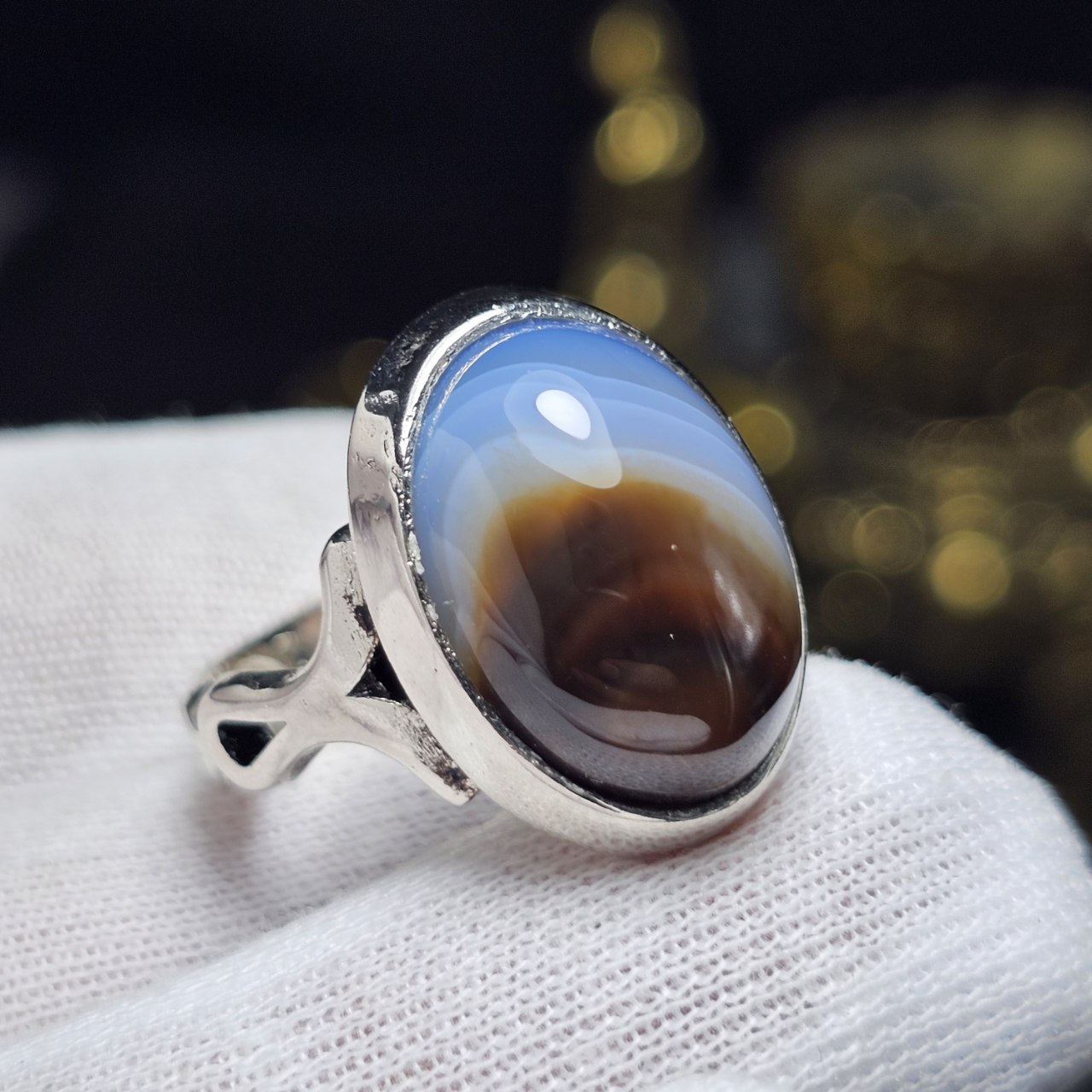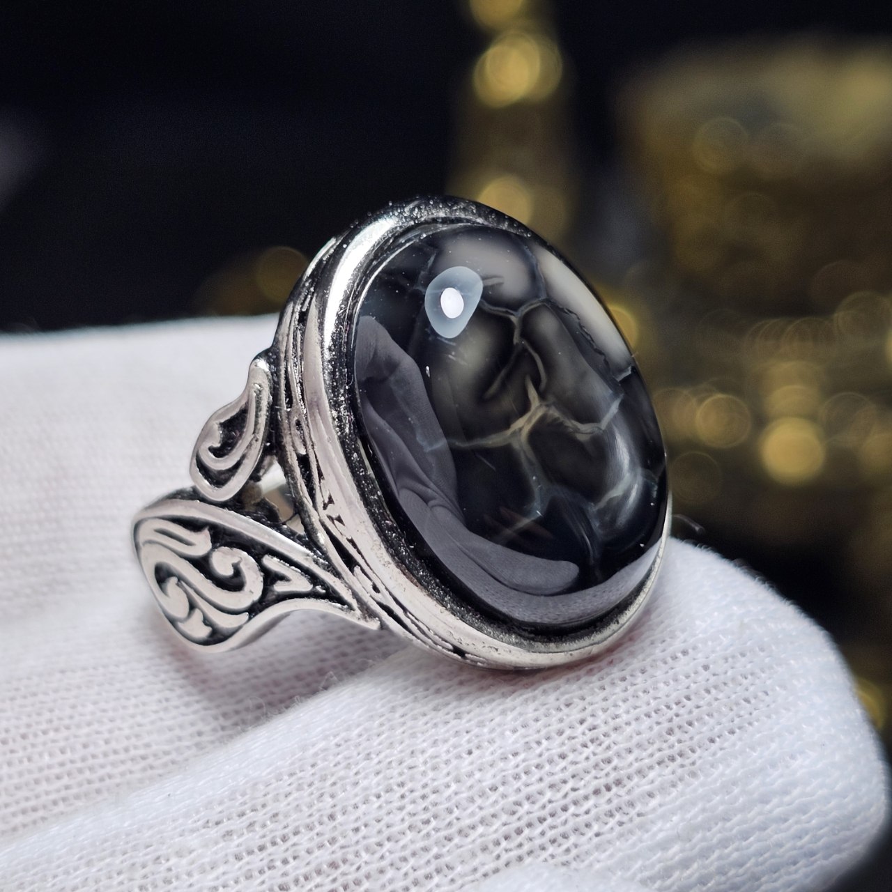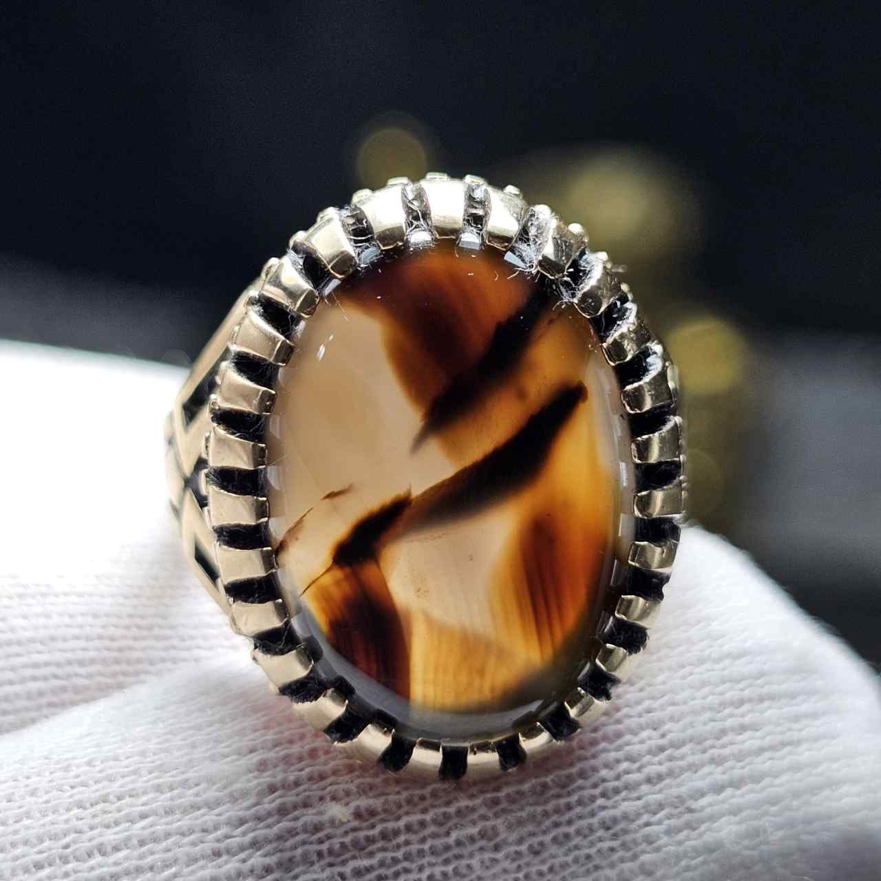 انگشتر نقره روس با سنگ عقیق جزع طبیعی معدنی خراسانی کد : 37016