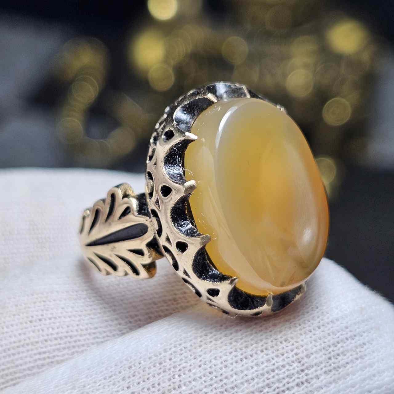 انگشتر طلا  روس با سنگ عقیق معدنی خراسانی کد : 37065
