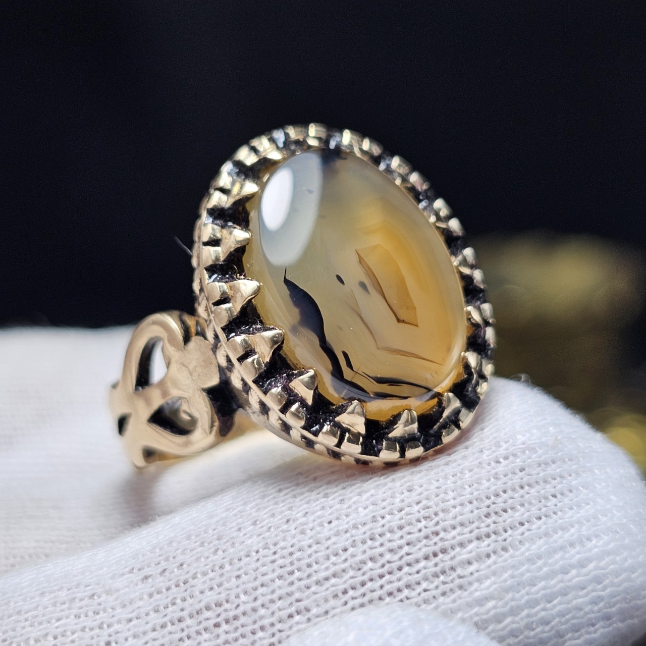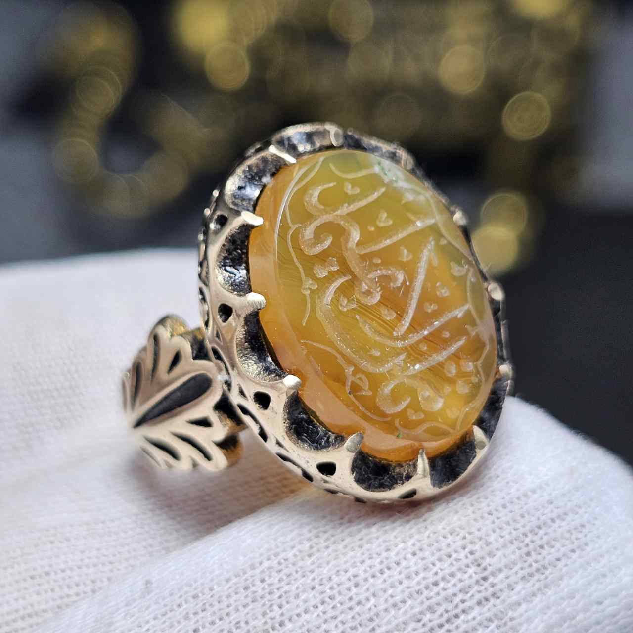 ⚡️ انگشتر طلا روس با سنگ عقیق معدنی با خط دست ▫️کد : 34767