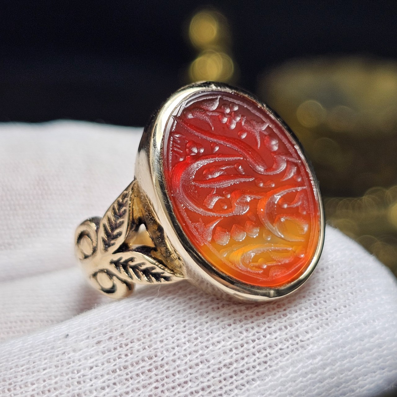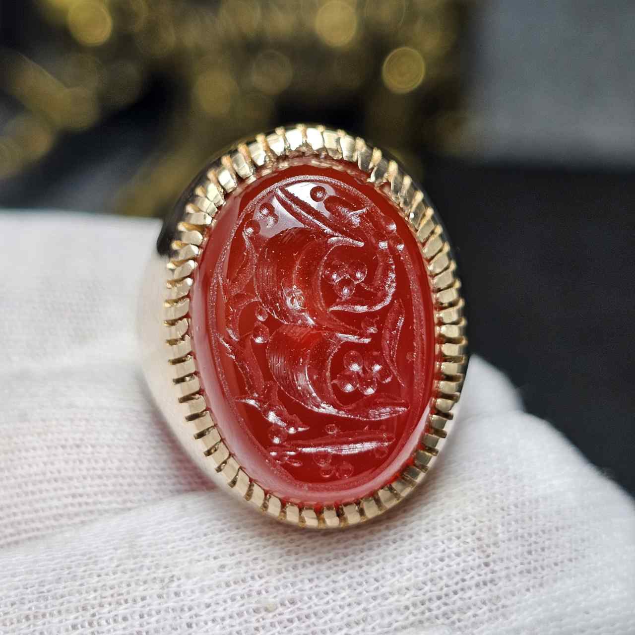 انگشتر طلا  روس با سنگ عقیق سرخ معدنی خط دست کد : 36547