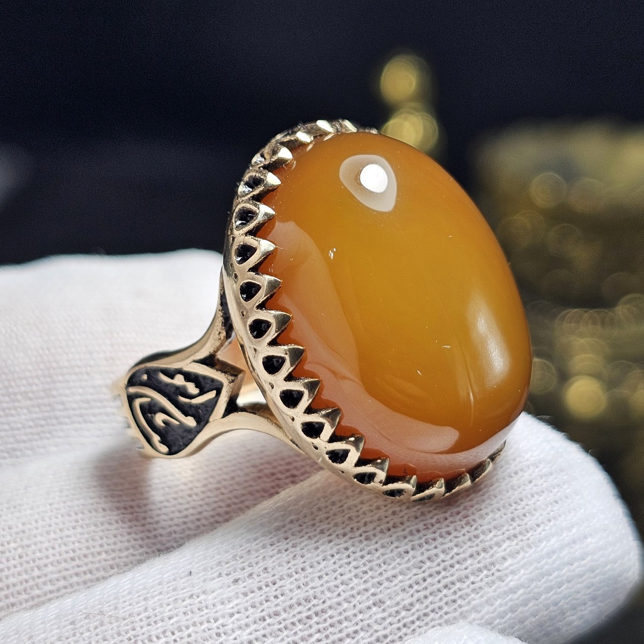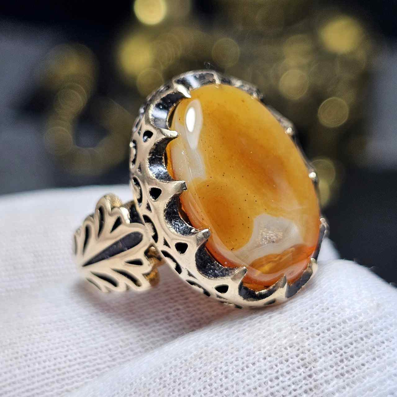 انگشتر طلا روس با سنگ عقیق جگری معدنی خط دست کد : 36559