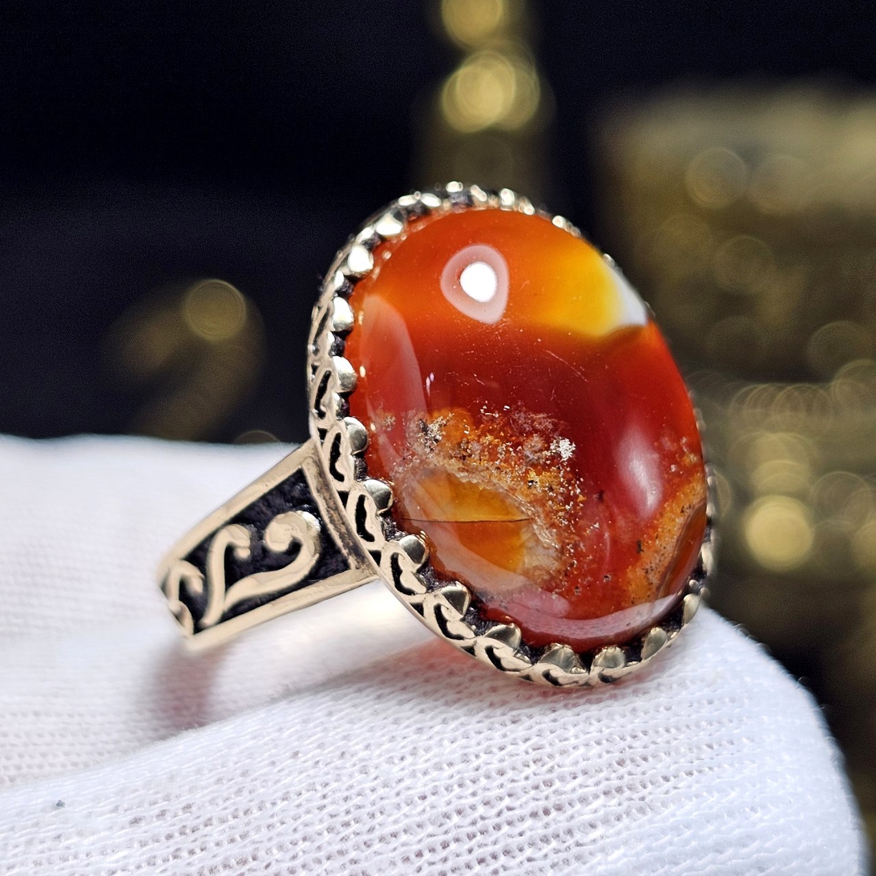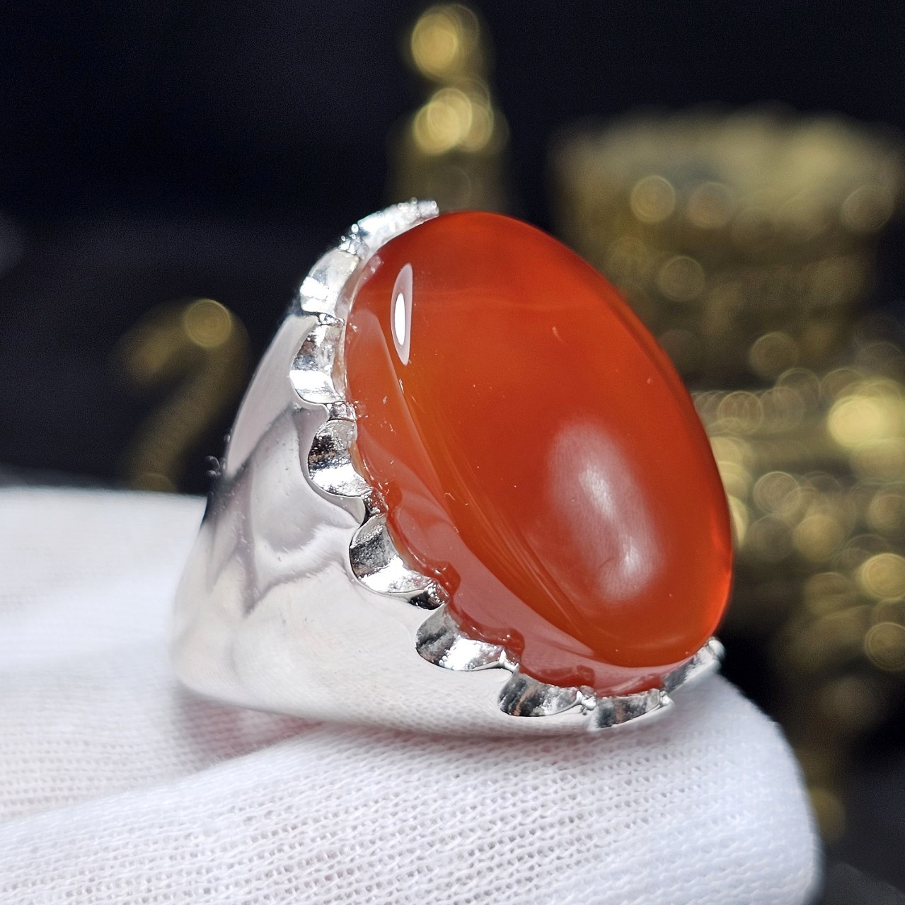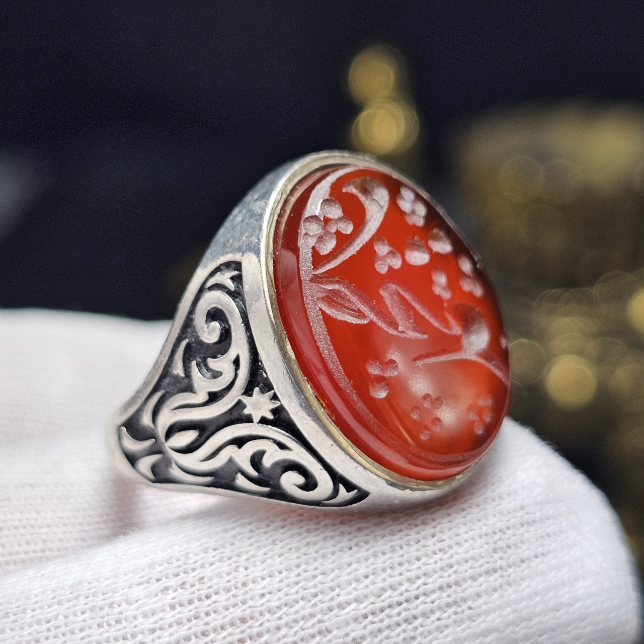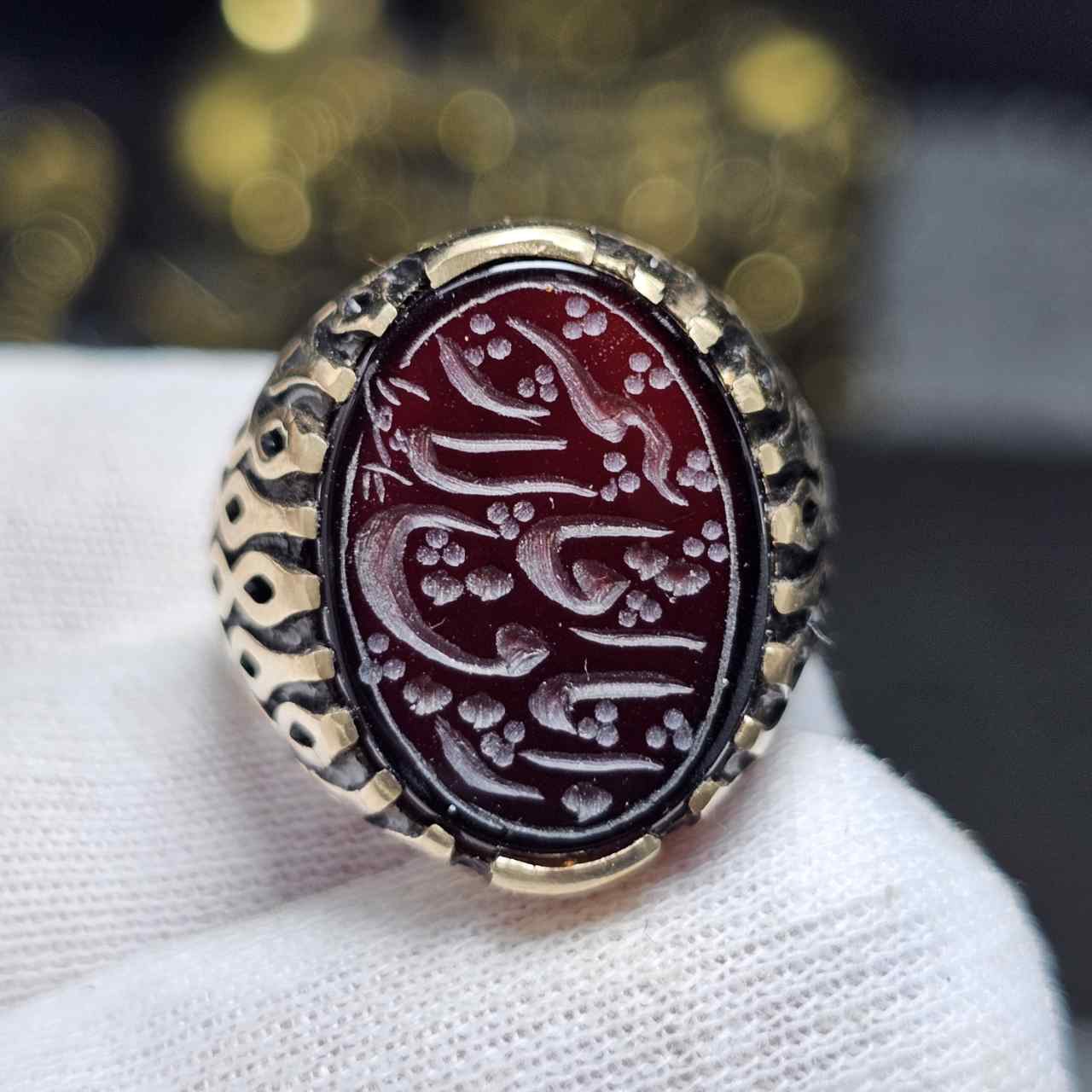 انگشتر نقره روس با سنگ عقیق سرخ معدنی خط دست کد : 37019