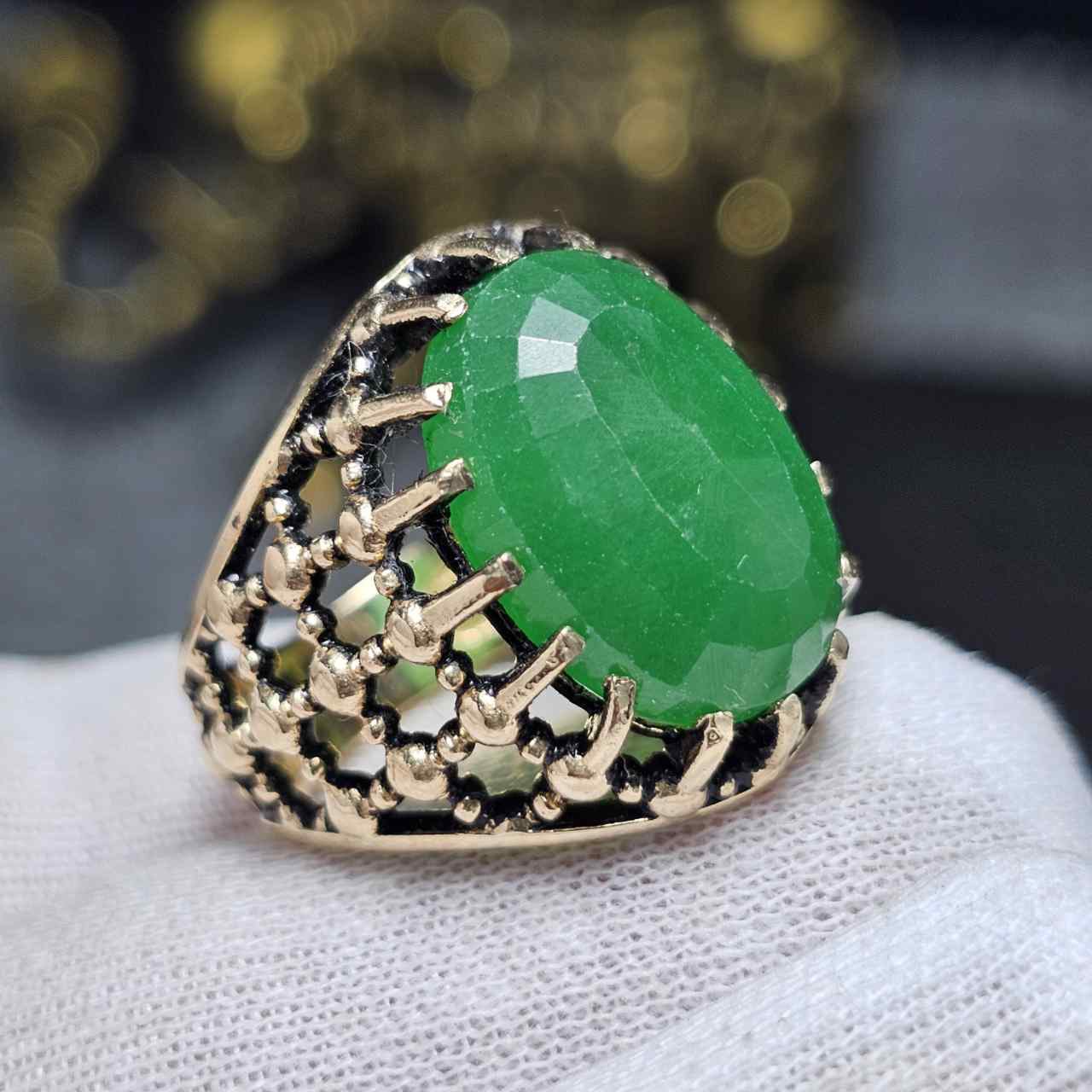 انگشتر طلا  روس با سنگ جید زمردی معدنی کد : 37049