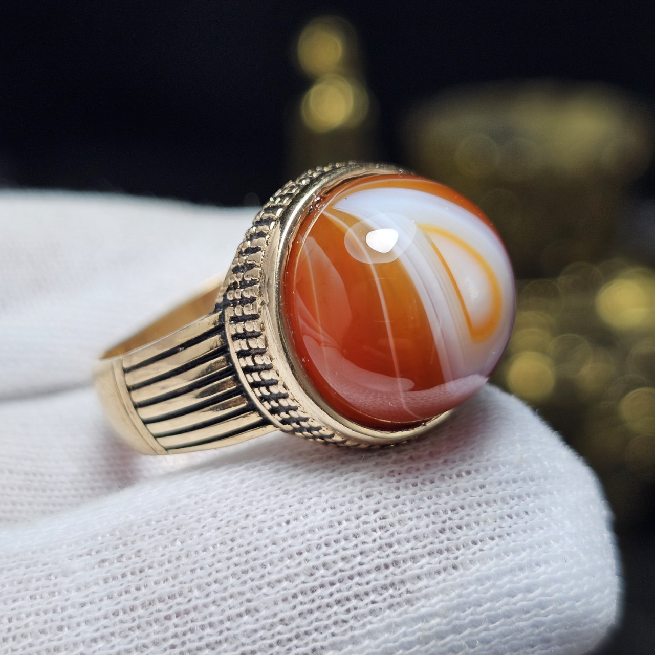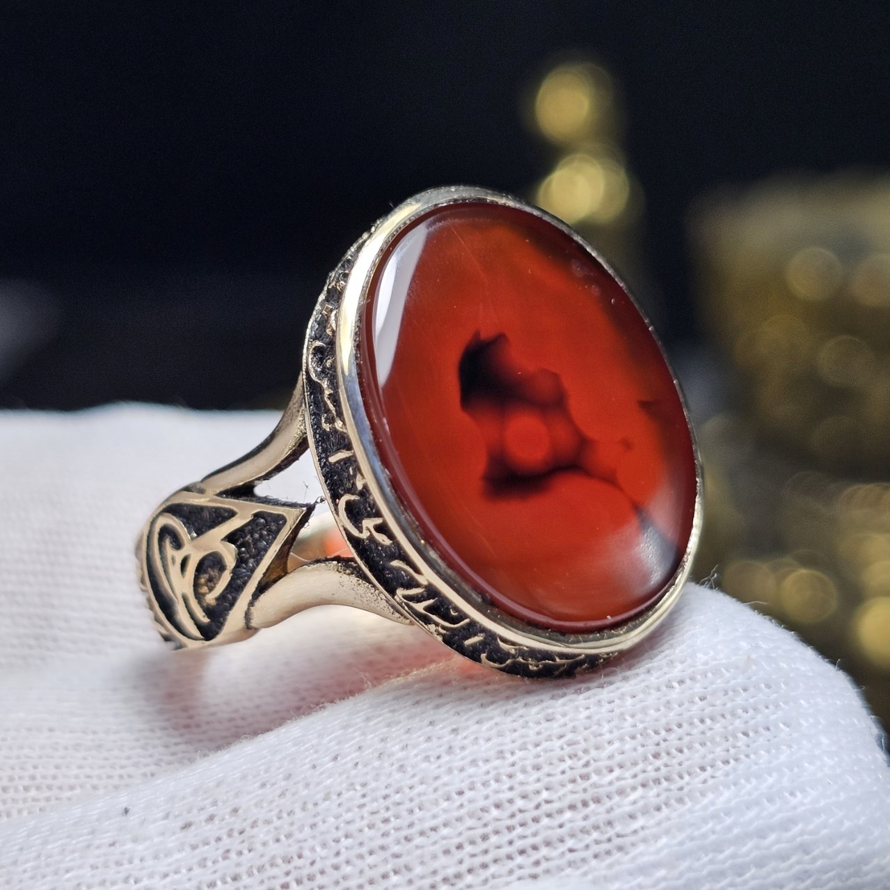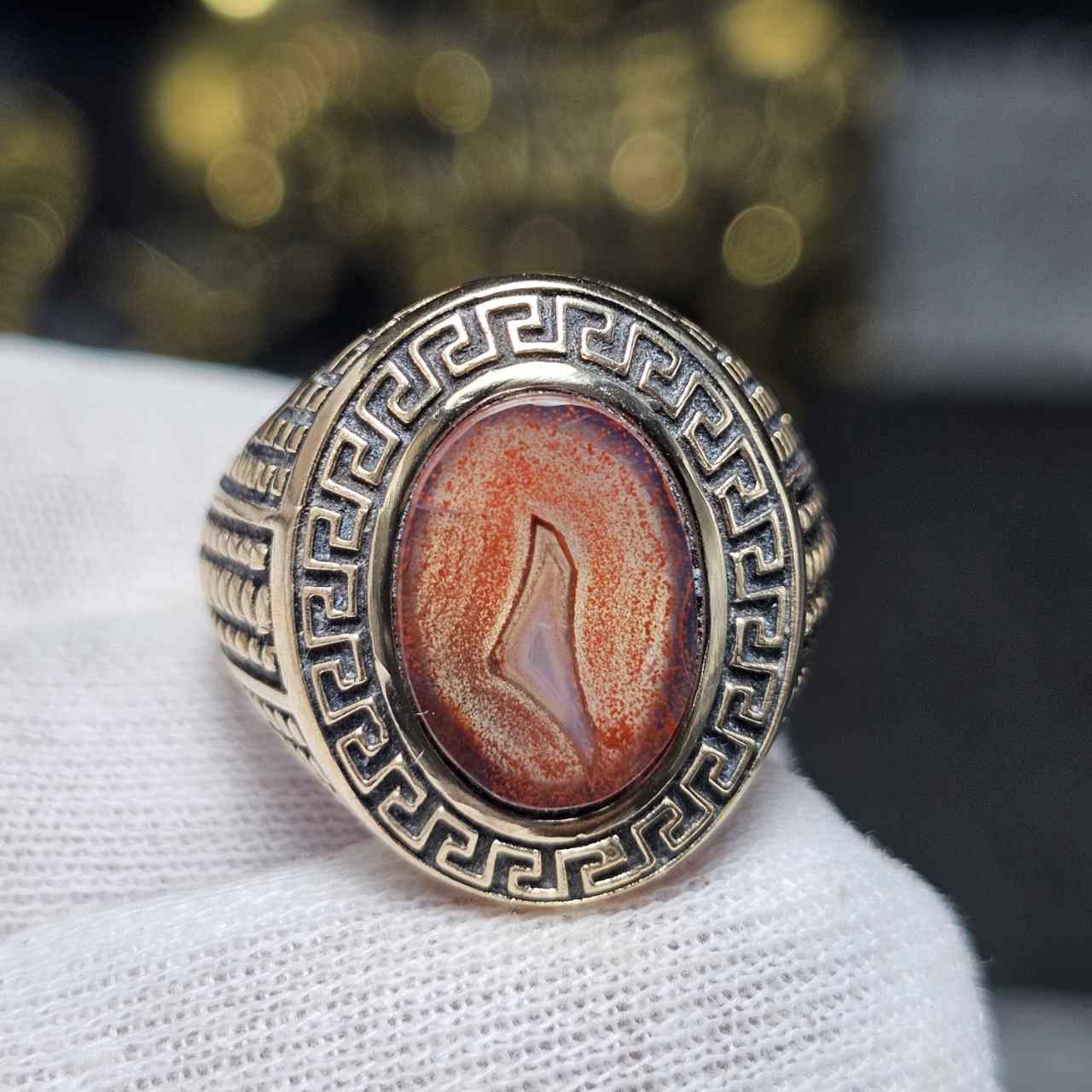 انگشتر طلا روس با سنگ عقیق جگری معدنی خط دست کد : 37048