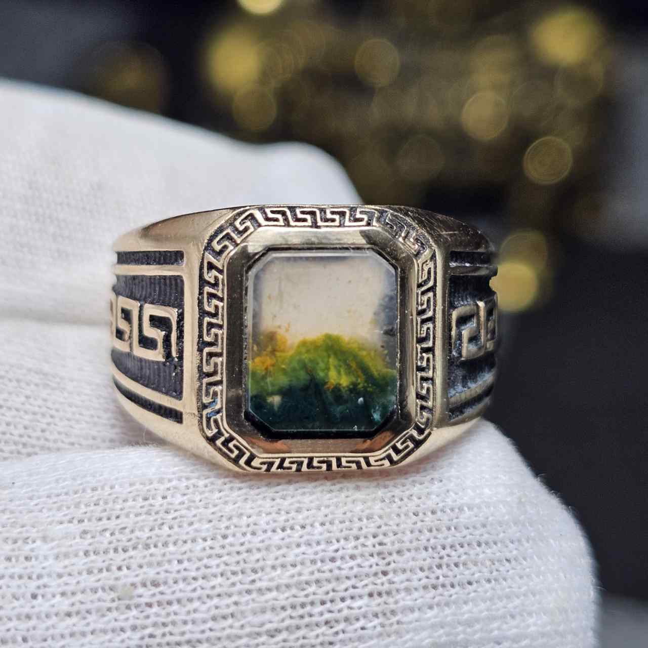 انگشتر طلا روس با سنگ طبیعی عقیق شجر خراسانی کد : 36569