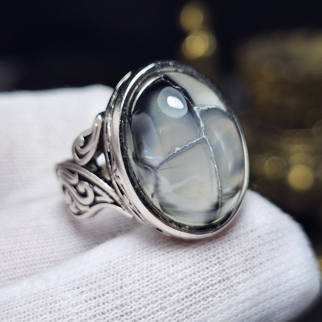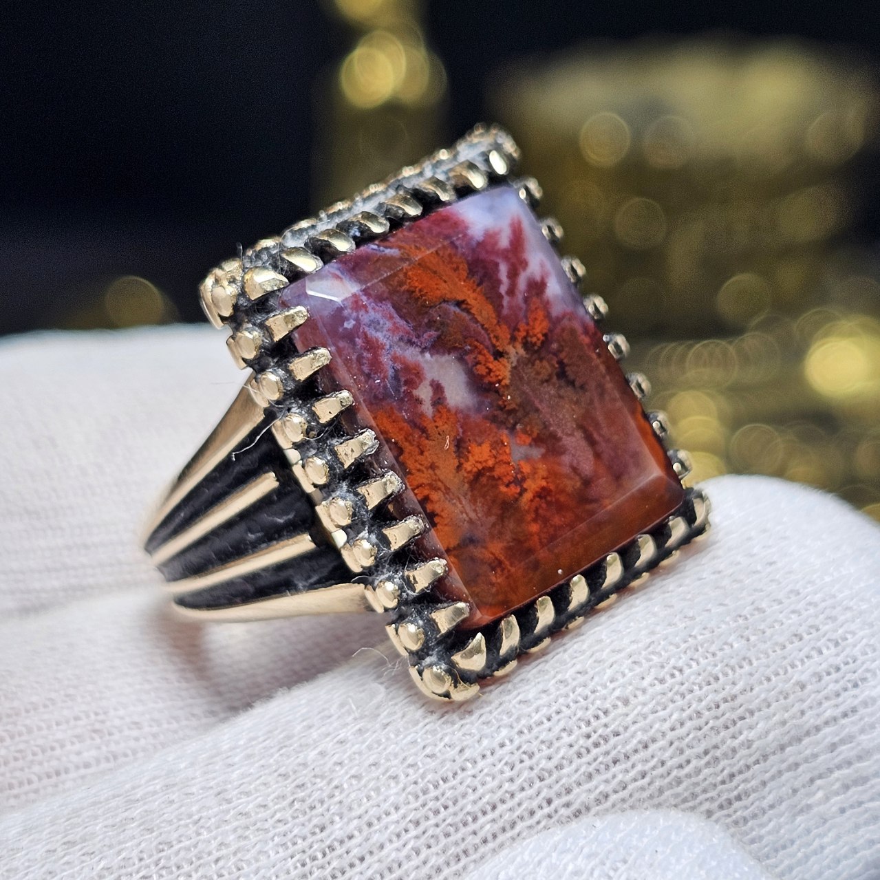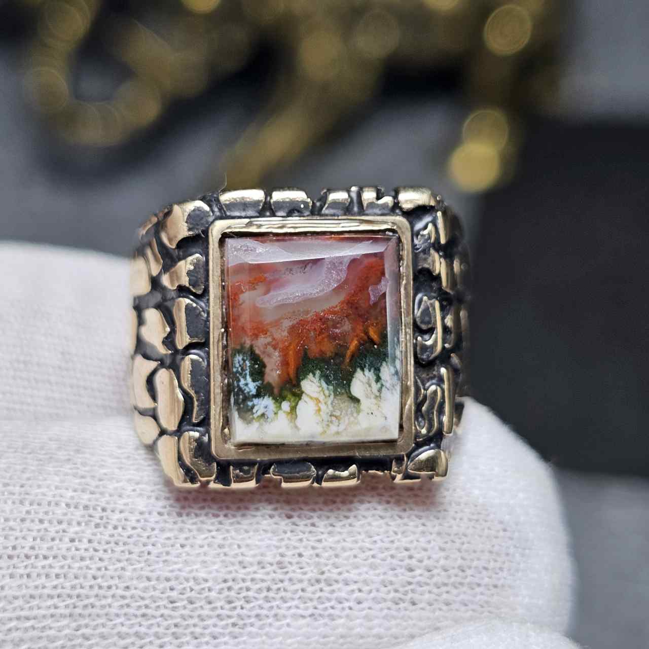 انگشتر نقره روس با سنگ عقیق دراگون معدنی ▫️کد : 37031