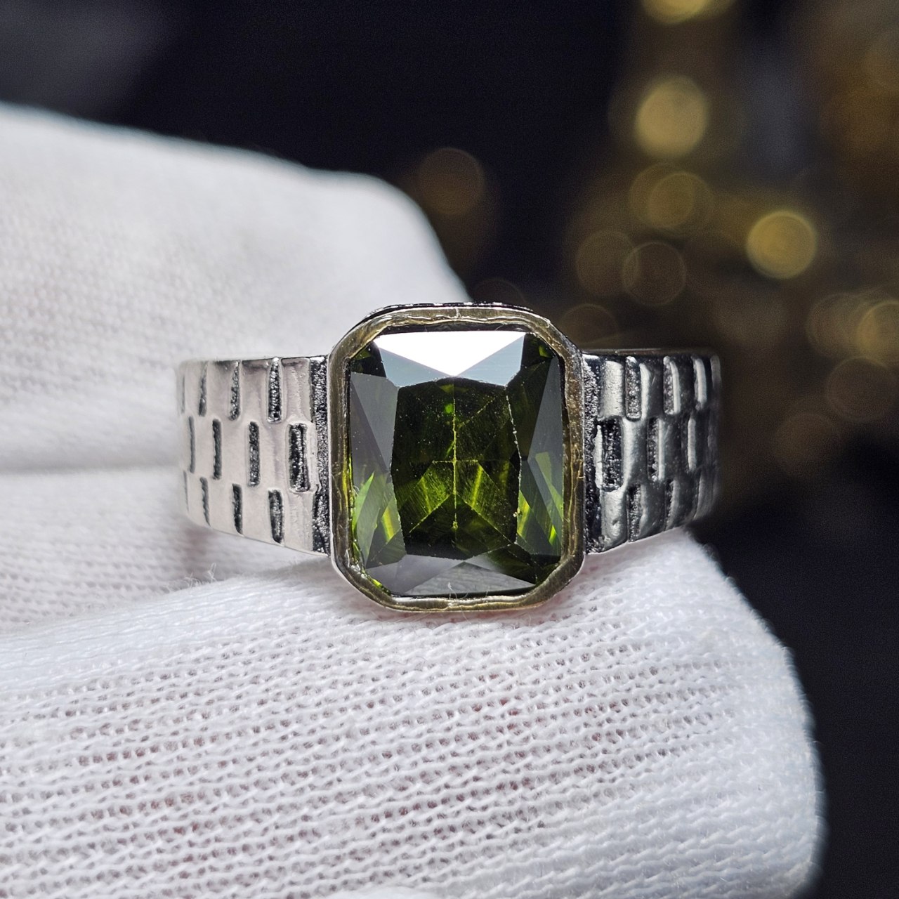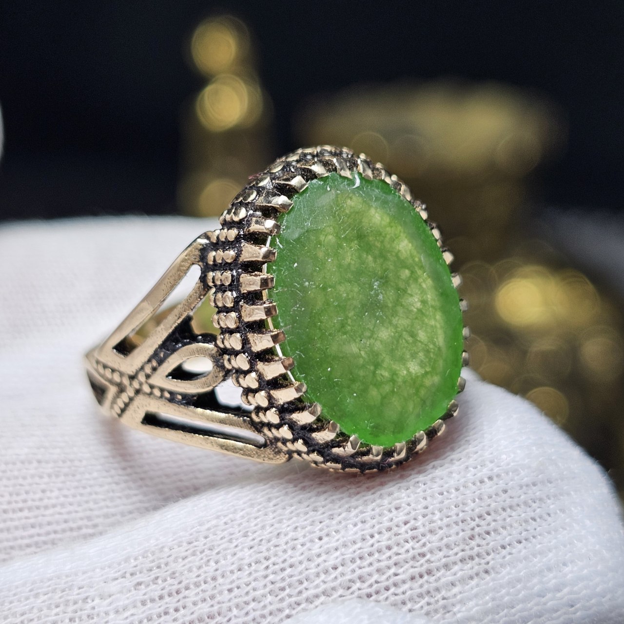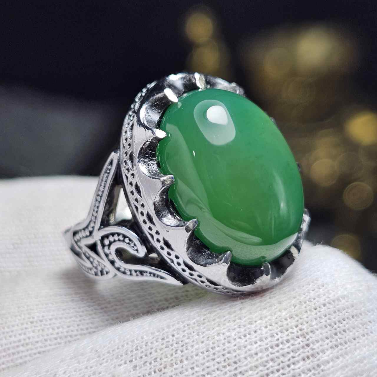 انگشتر نقره روس با سنگ عقیق سبز معدنی کد : 36580