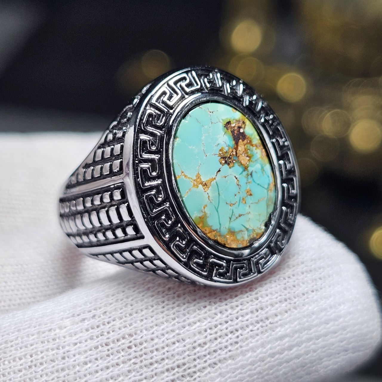 انگشتر نقره روس با سنگ طبیعی فیروزه معدنی نیشابور کد : 37017