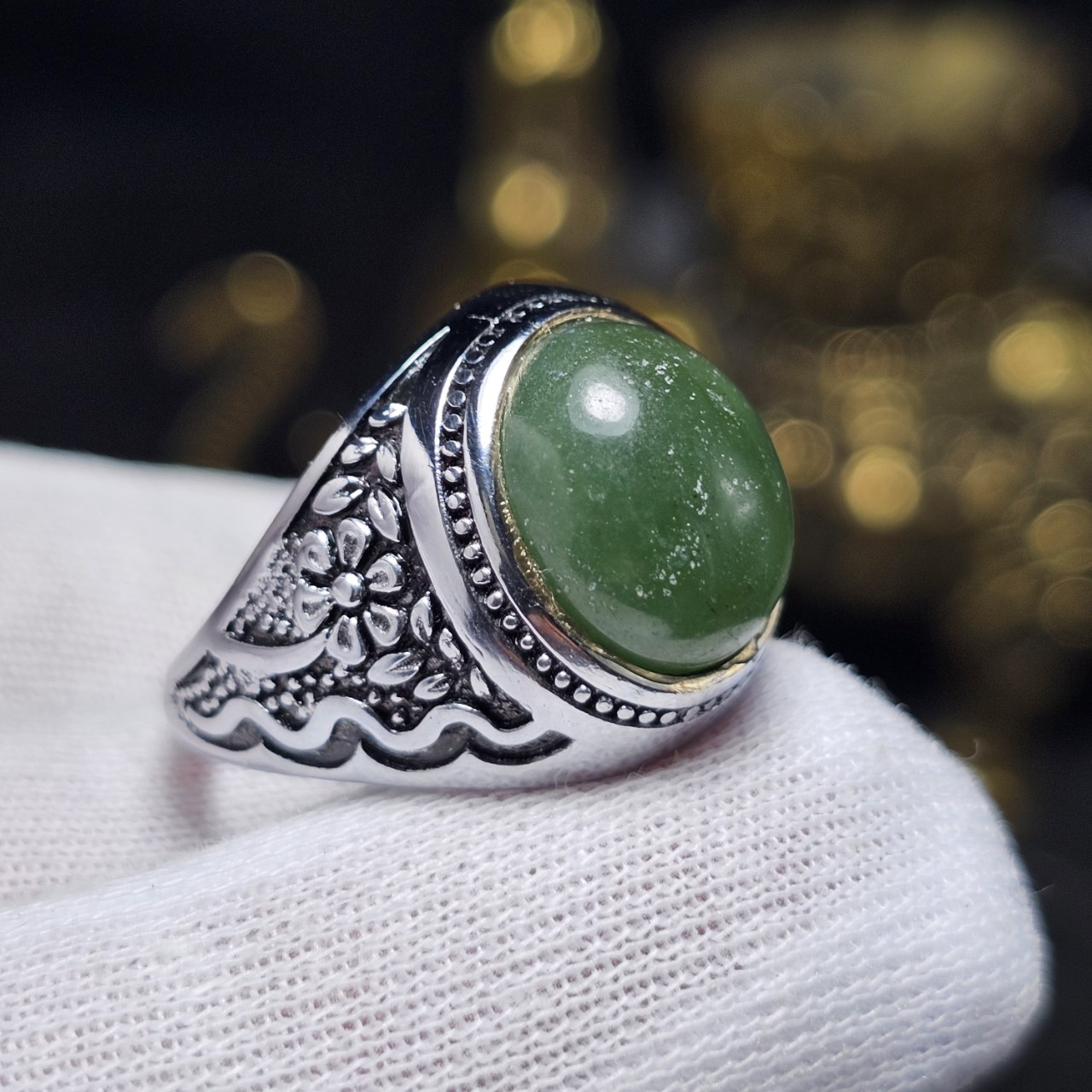 انگشتر نقره روس با سنگ یشم معدنی کد : 37025