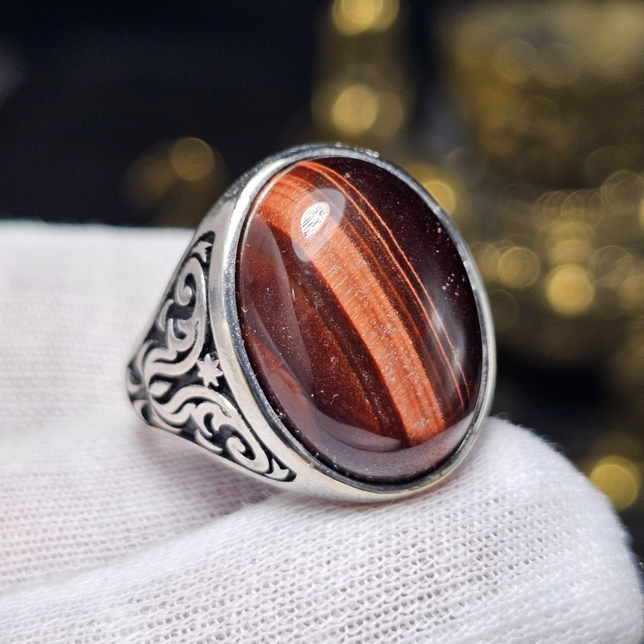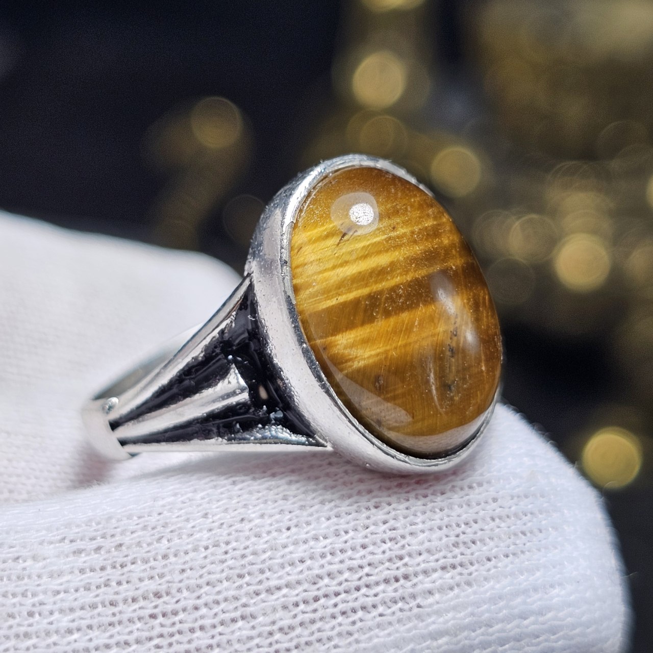انگشتر نقره روس با سنگ چشم ببر معدنی ▫️کد : 36573