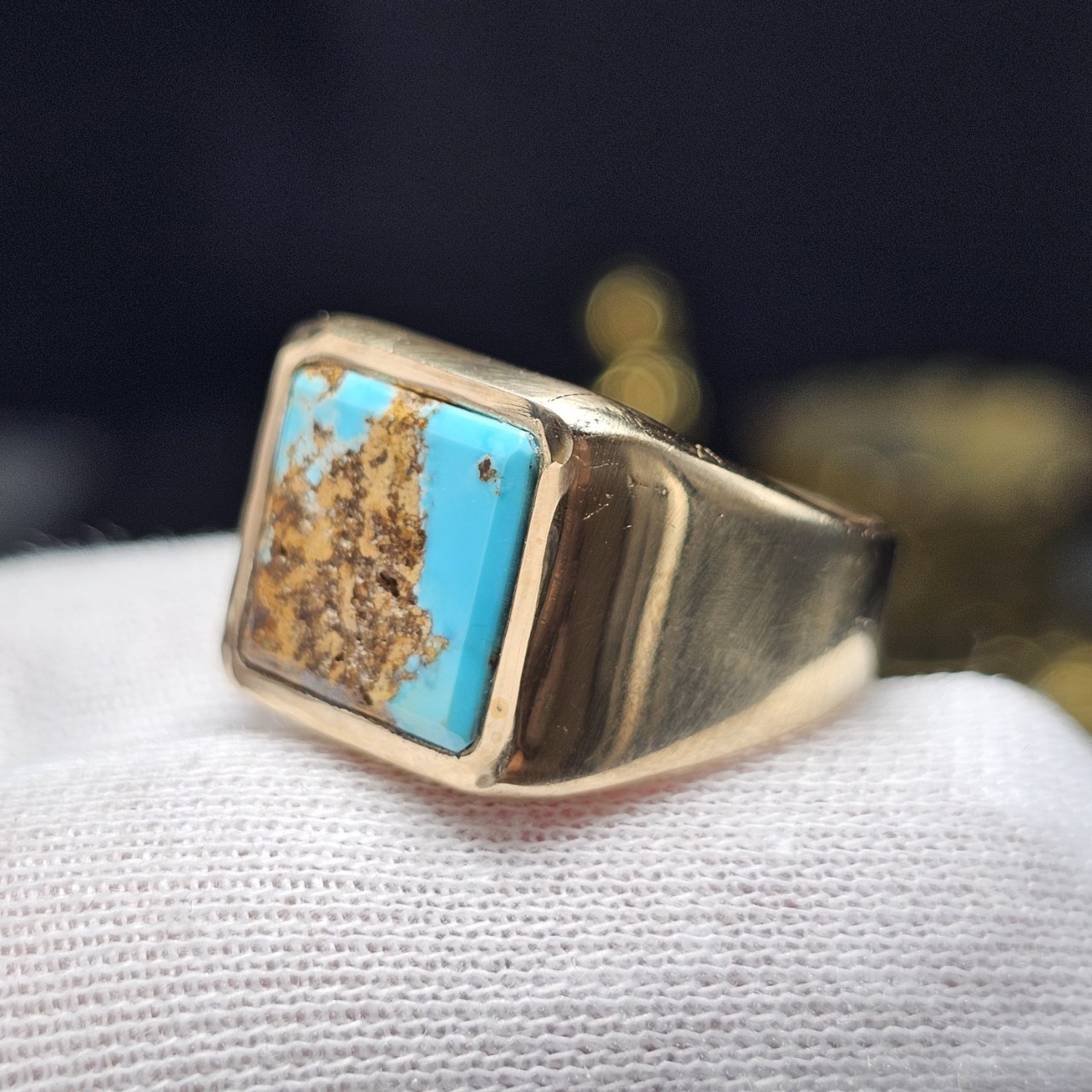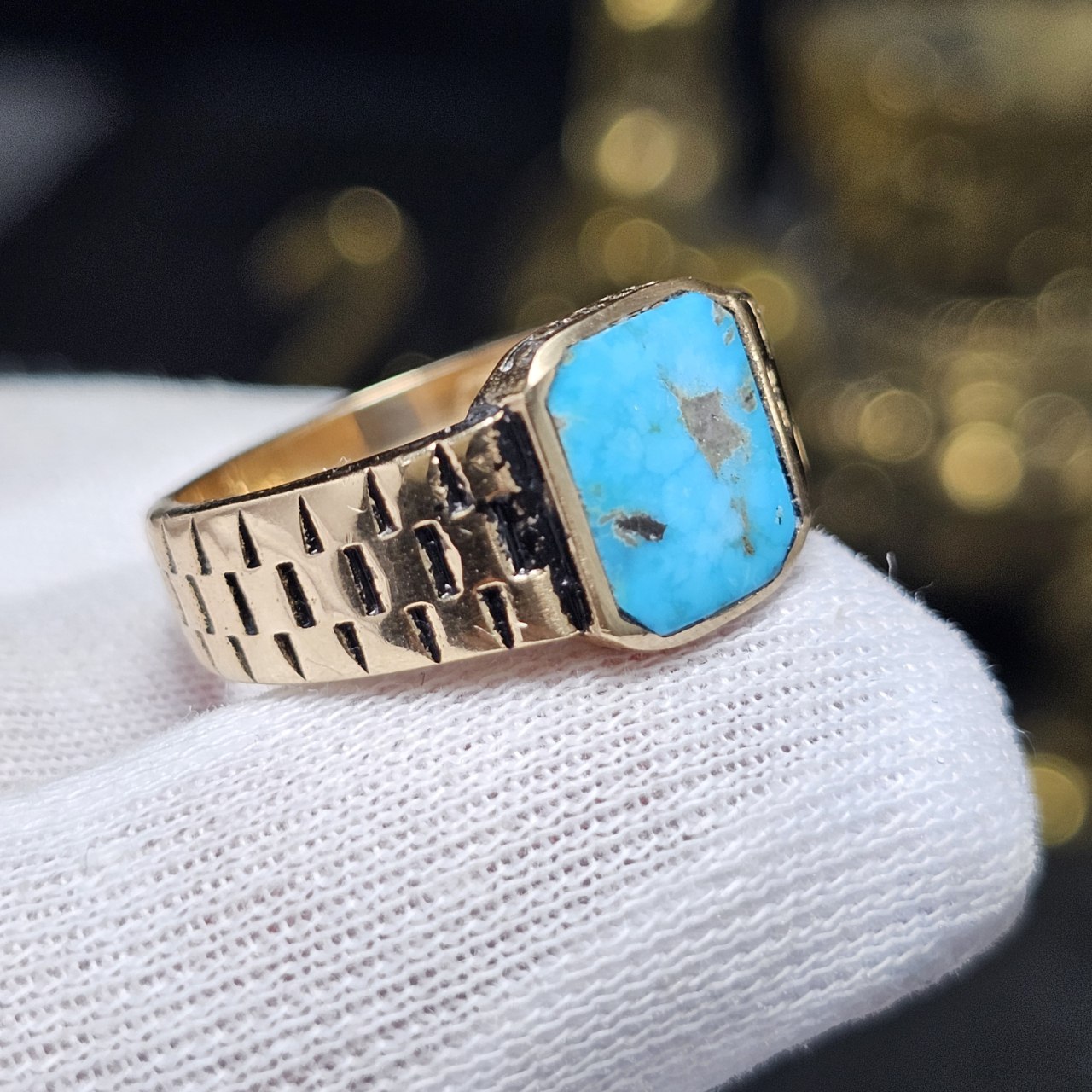 انگشتر طلا  روس با سنگ فیروزه معدنی اصل نیشابور کد : 37041