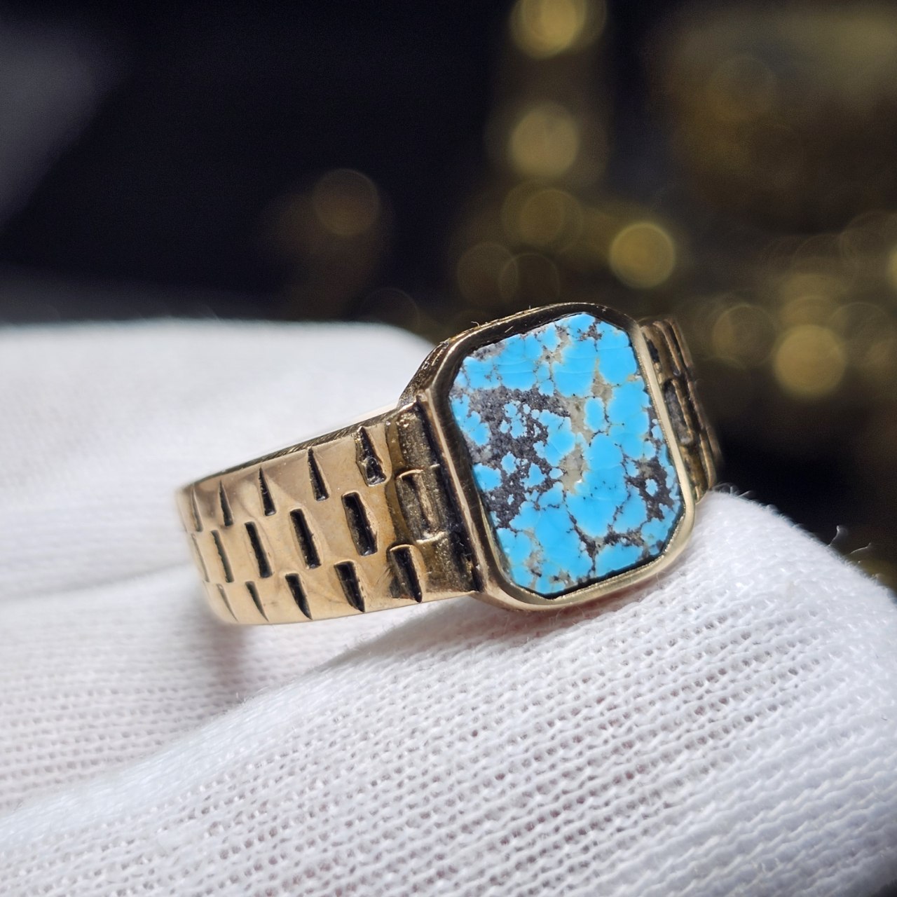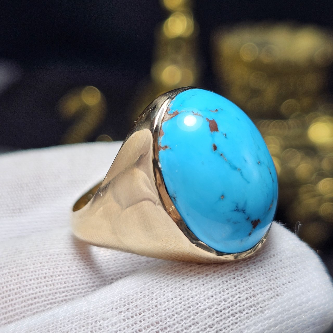 انگشتر طلا روس با سنگ فیروزه معدنی اصل نیشابور کد : 37038