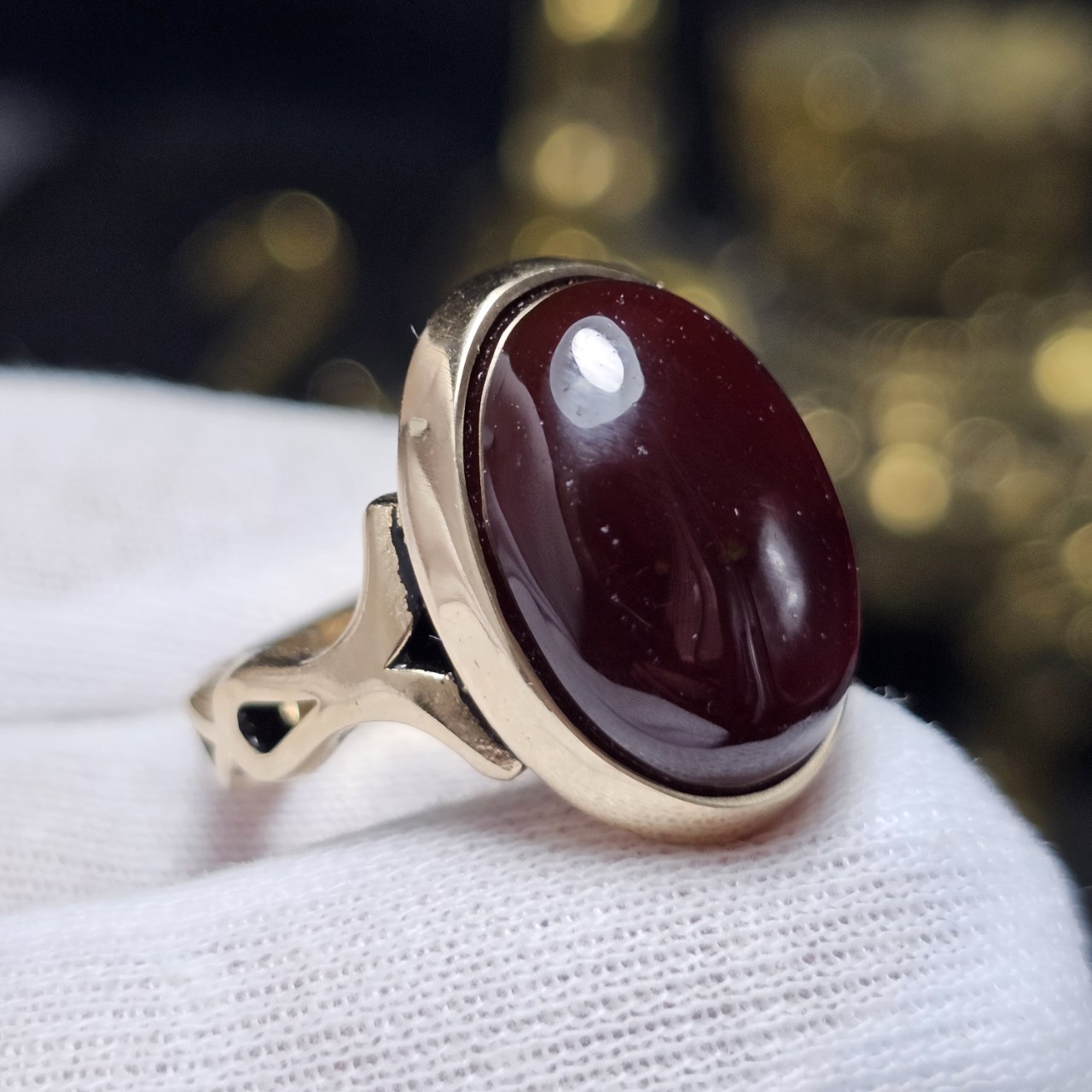 انگشتر طلا روس با سنگ عقیق خونی طبیعی خراسانی کد : 36566