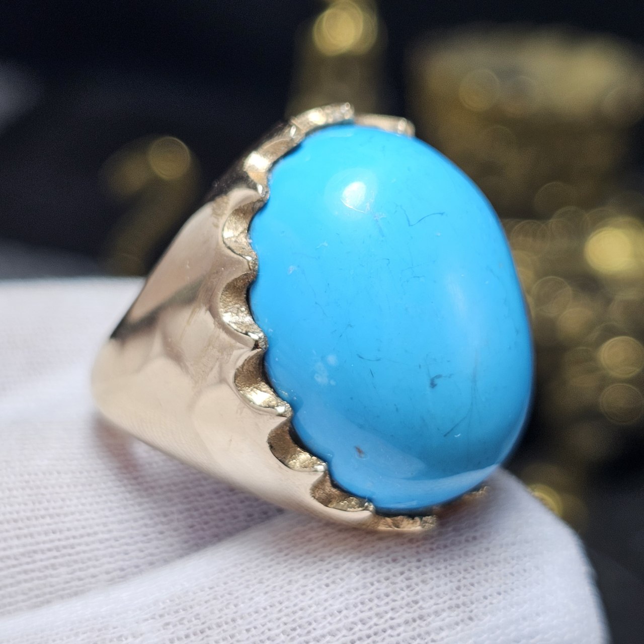 انگشتر طلا روس با نگین درشت سنگ فیروزه معدنی احیا کد : 37050