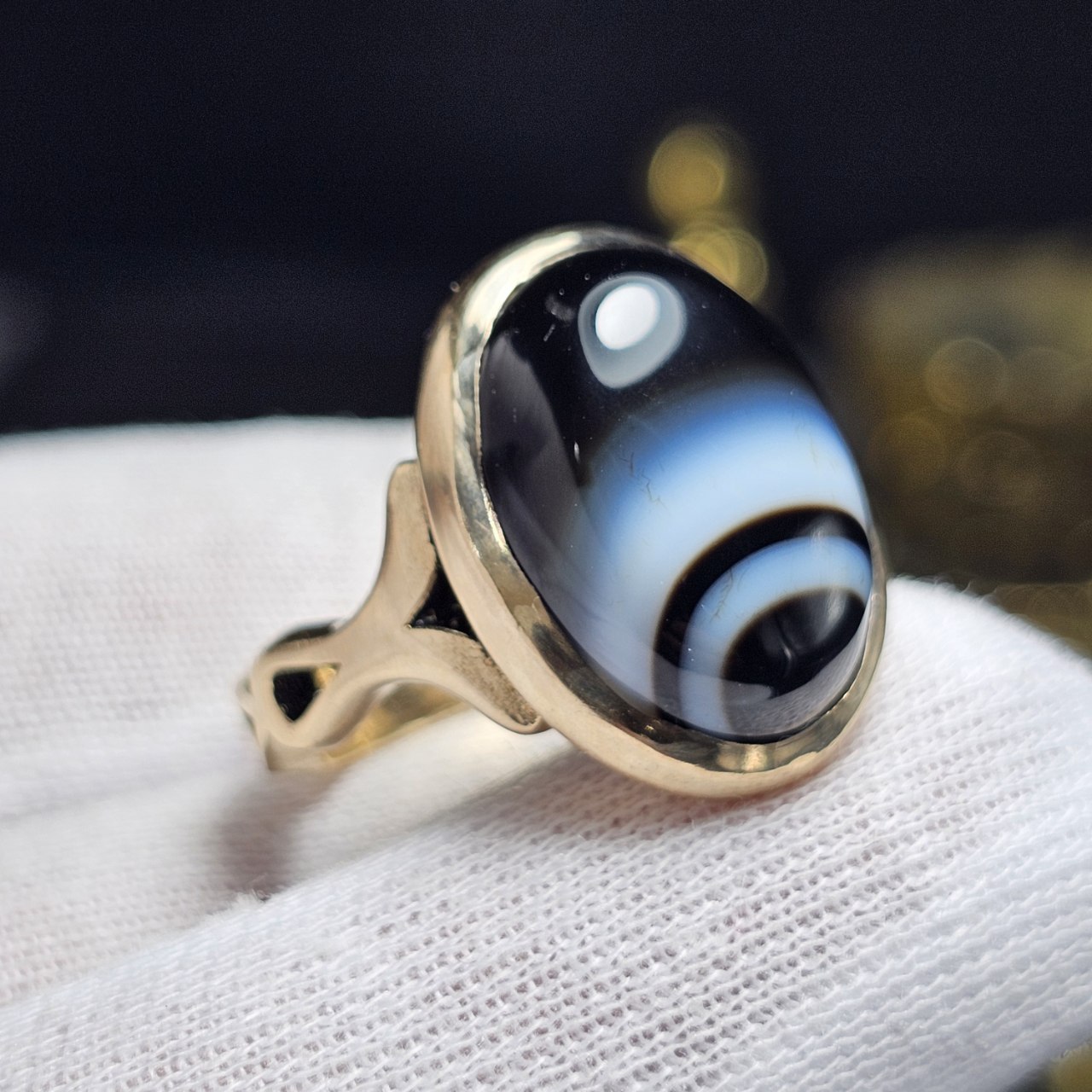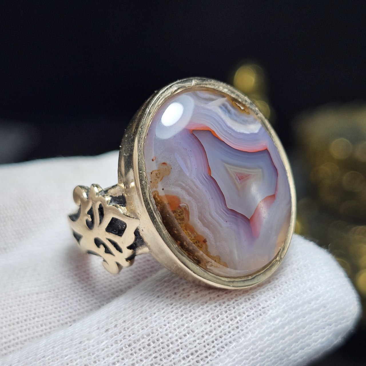 انگشتر طلا روس با سنگ عقیق سه پوست معدنی کد : 37046