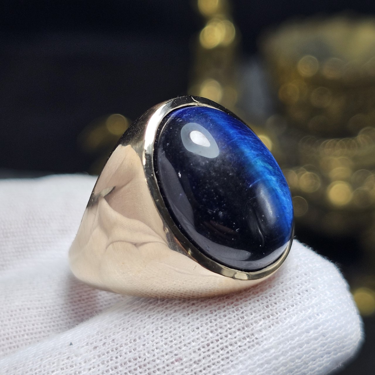 انگشتر طلا روس با سنگ چشم ببر معدنی کد : 37056