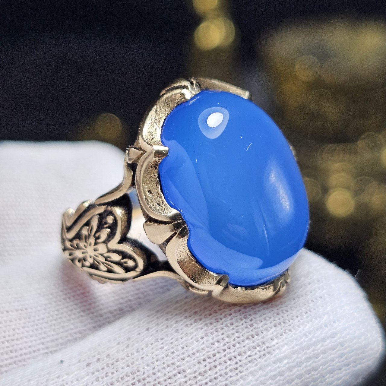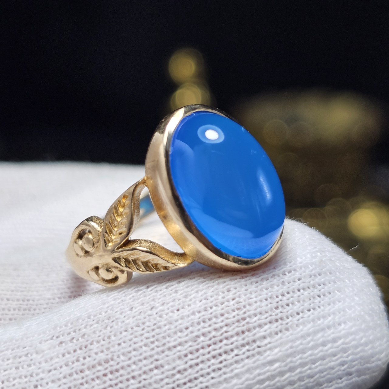 انگشتر طلا روس با سنگ عقیق آبی معدنی کد : 37070