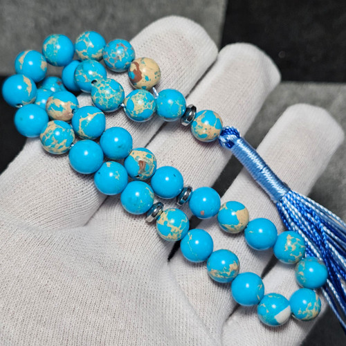 تسبیح ۳۳ دانه سنگ فیروزه اقیانوسی کد  37083
