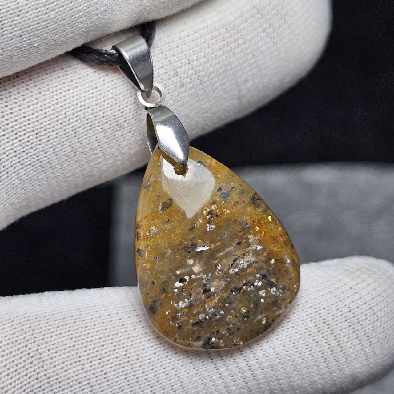 ⚡️ گردن آویز سنگ طبیعی سان استون کوارتز معدنی کد : 33389