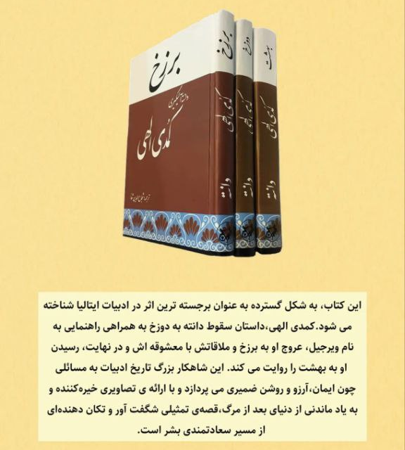 کتاب "کمدی الهی" (Divina Commedia) اثر دانته آلیگری، یکی از مهمترین آثار ادبیات جهان و شاهکار شعر ایتالیایی است. این اثر به سه بخش اصلی تقسیم میشود: دوزخ، برزخ و بهشت.
