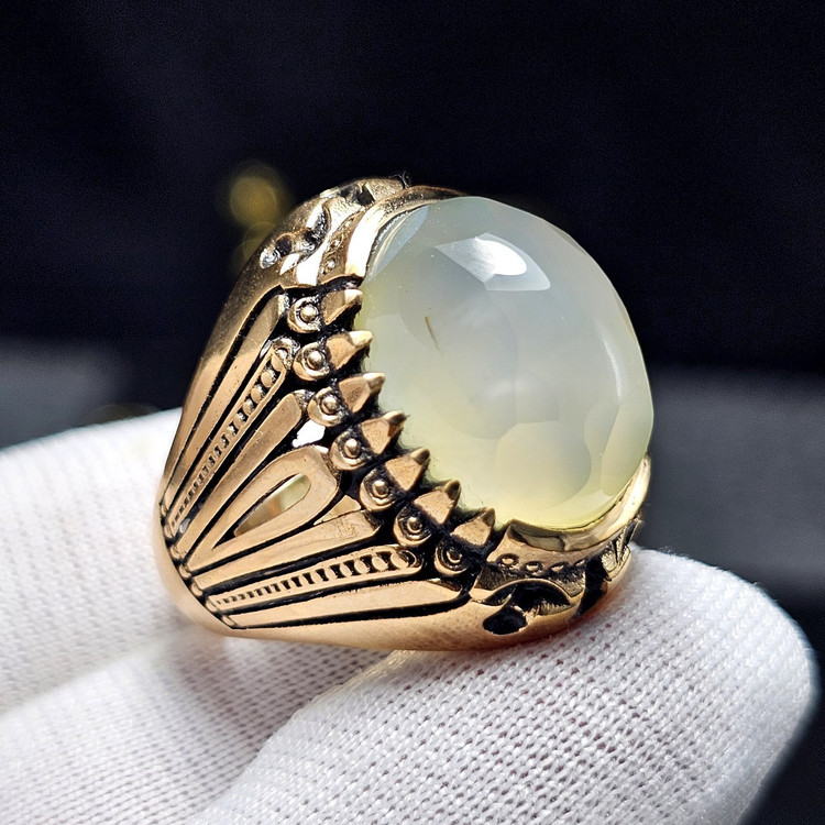 ⚡️ انگشتر طلا روس با سنگ عقیق لیمویی معدنی تراش فست با دعای شرف الشمس ▫️کد : 35811