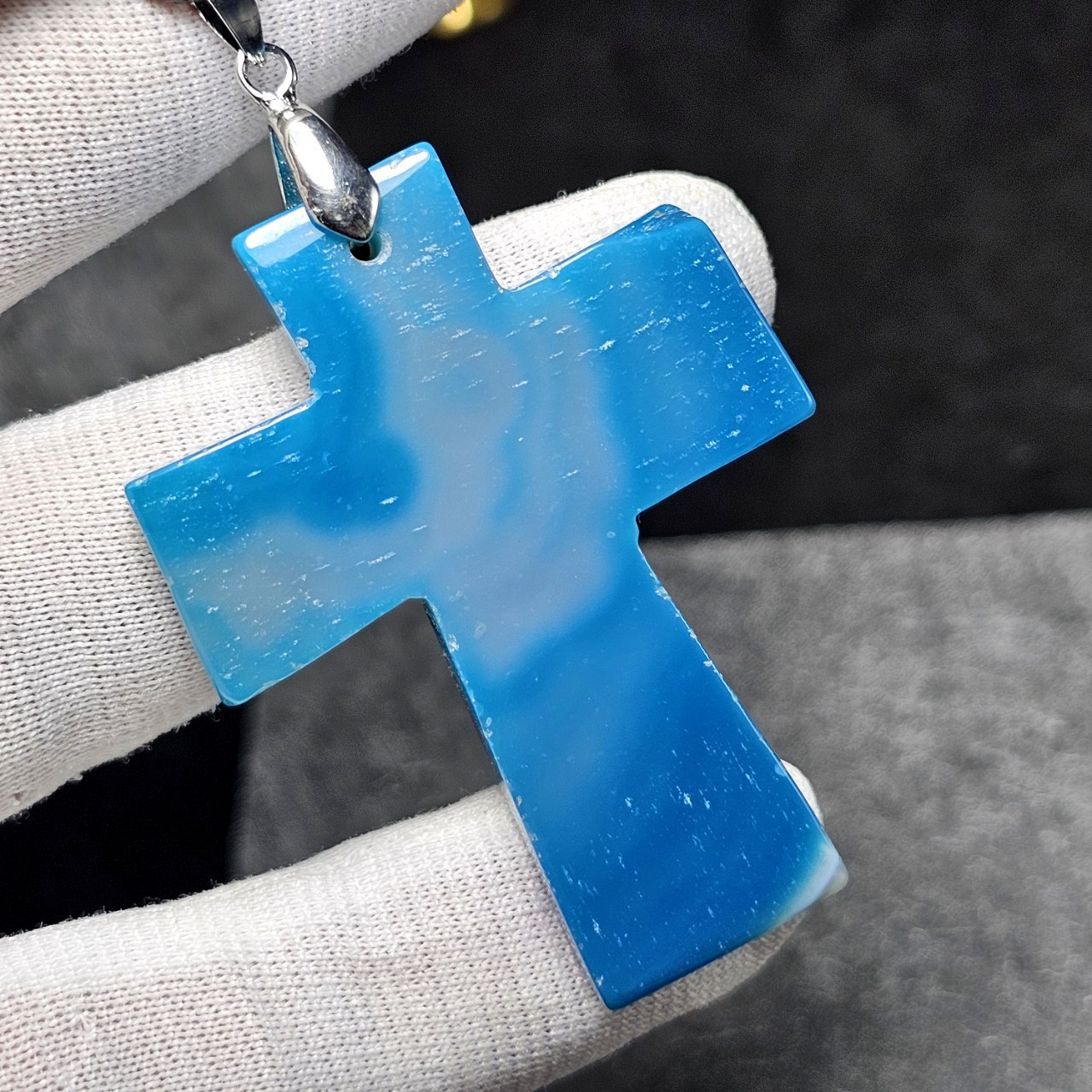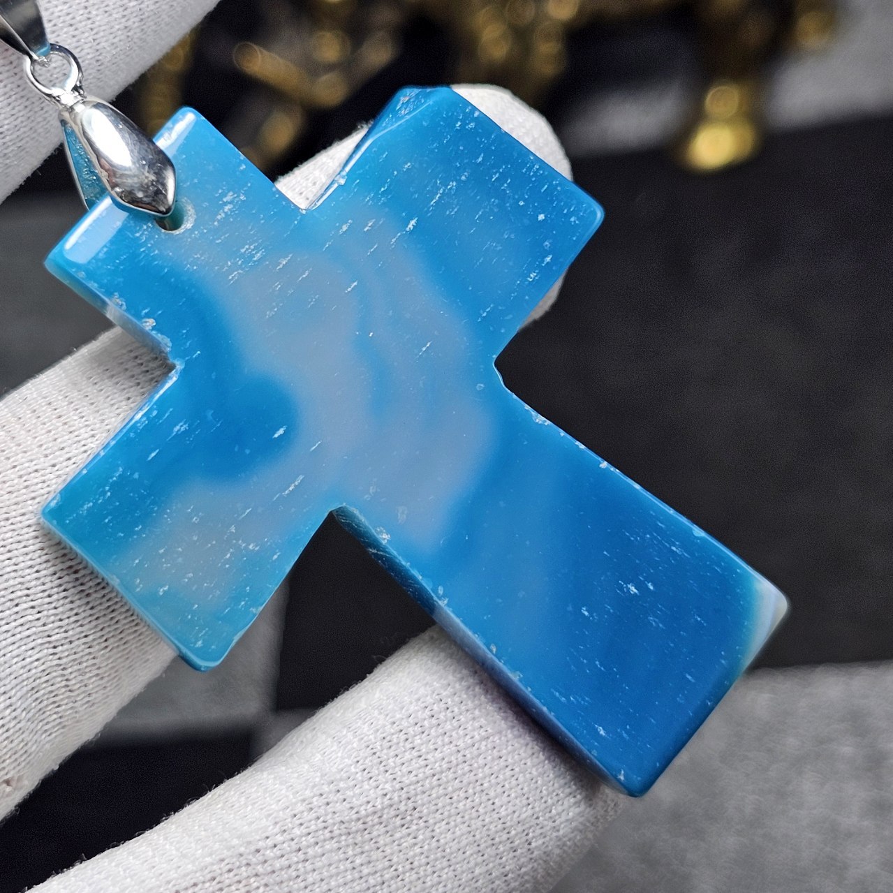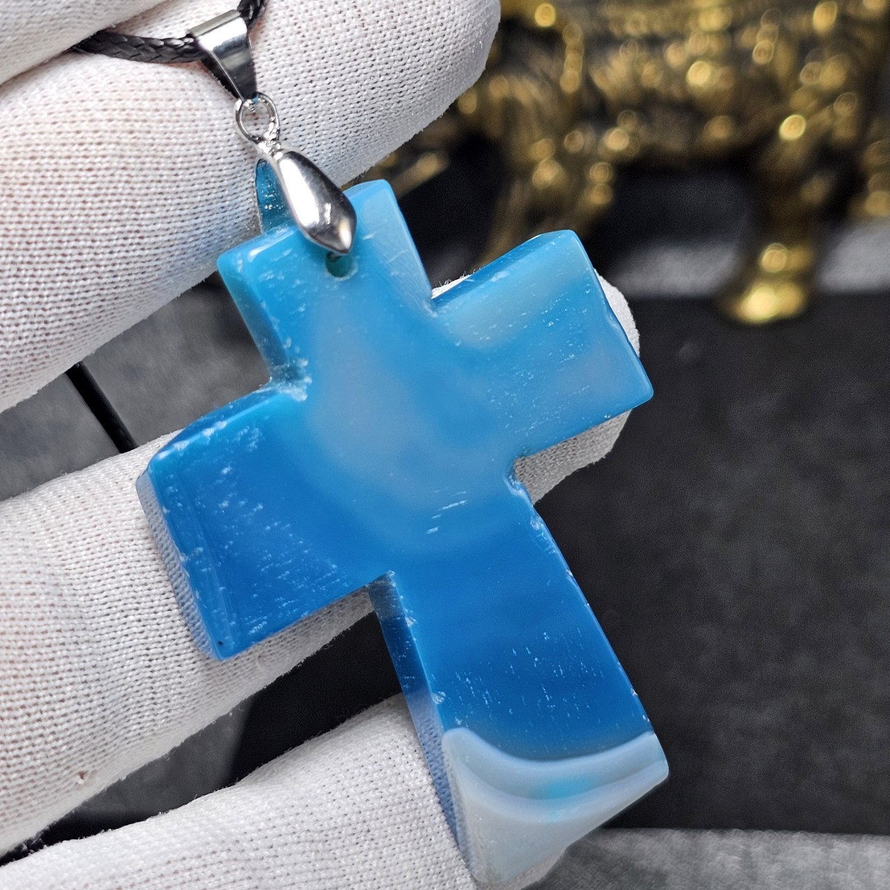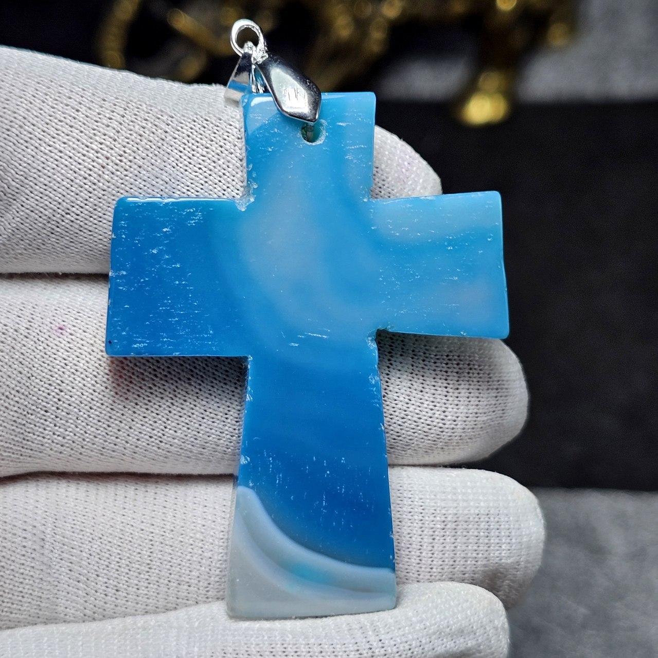 آویز گردنبند درشت سنگ عقیق معدنی طرح صلیب کد : 36291
