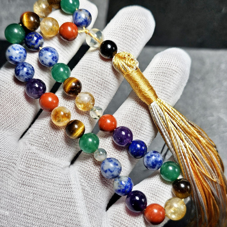 تسبیح ۳۳ دانه سنگ های هفت چاکرای معدنی