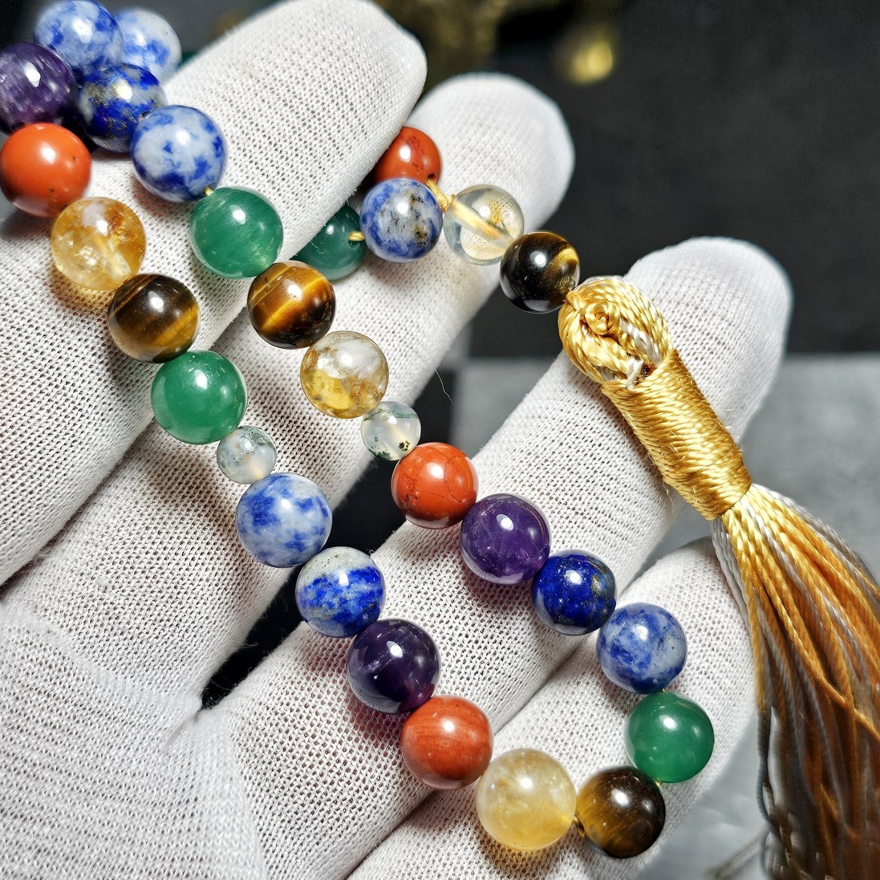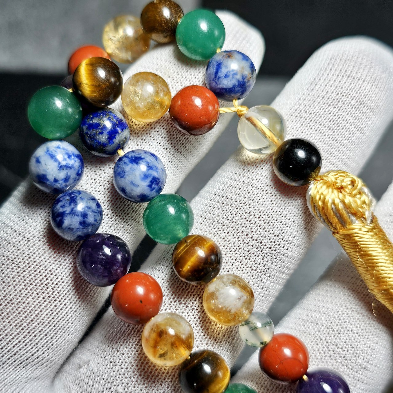 تسبیح ۳۳ دانه سنگ های هفت چاکرای معدنی