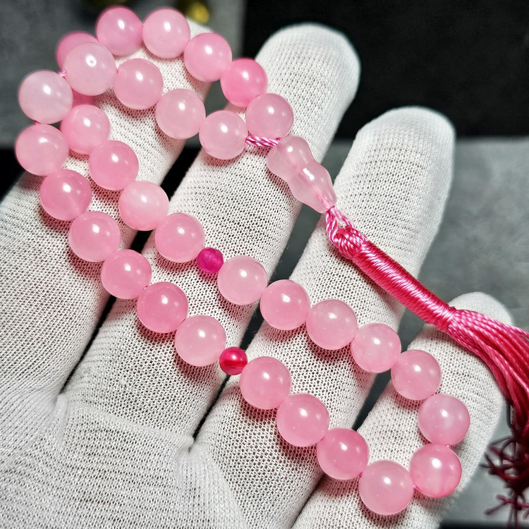 تسبیح ۳۳ دانه جید صورتی معدنی