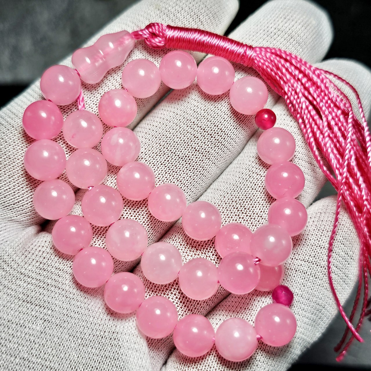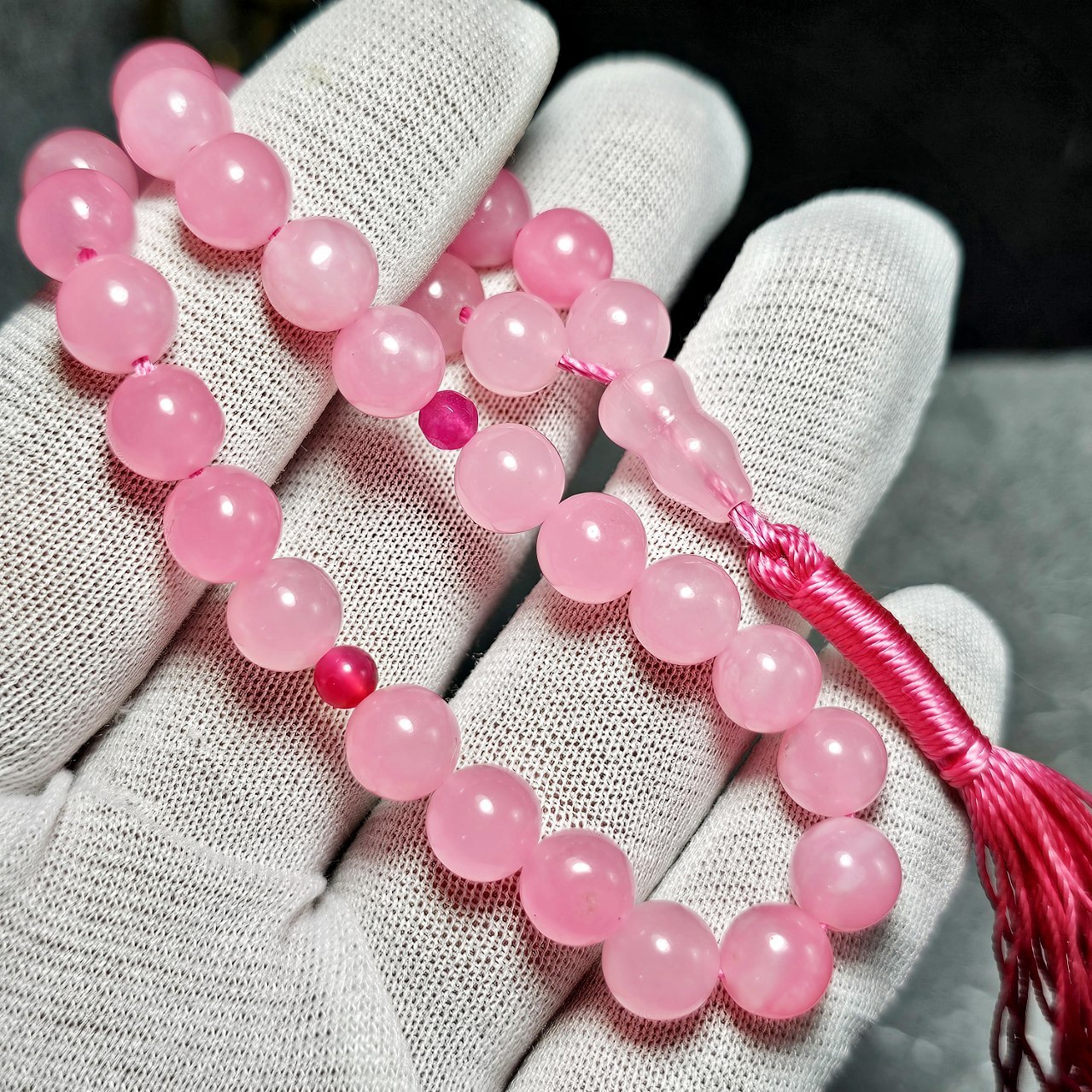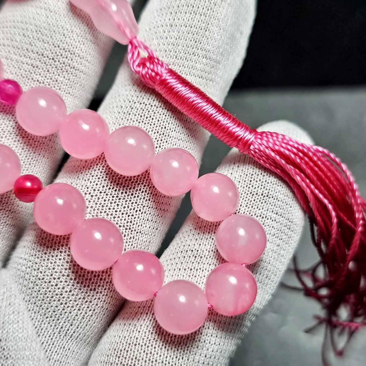 تسبیح ۳۳ دانه جید صورتی معدنی