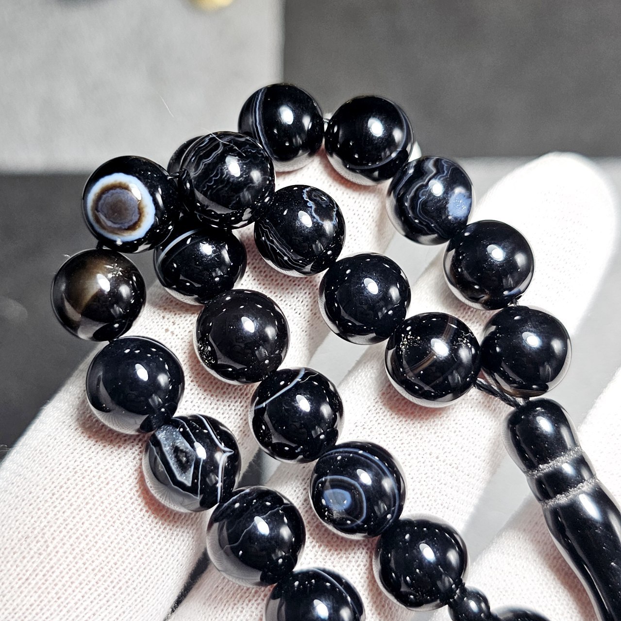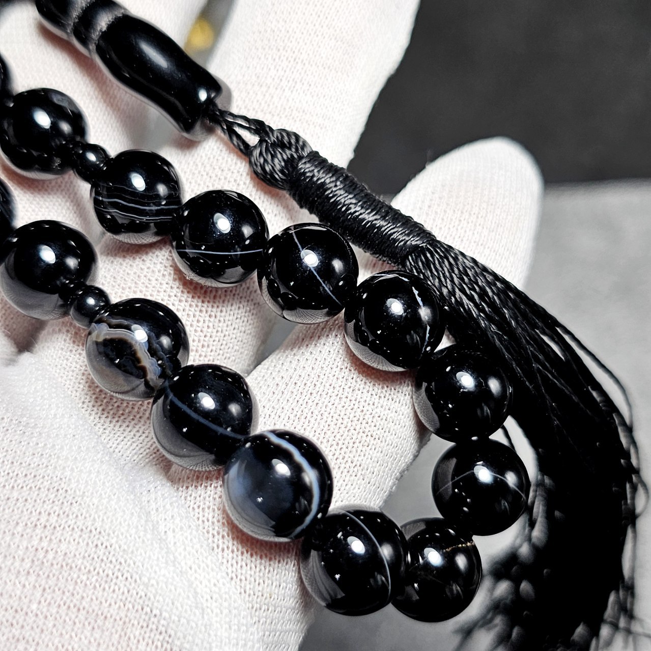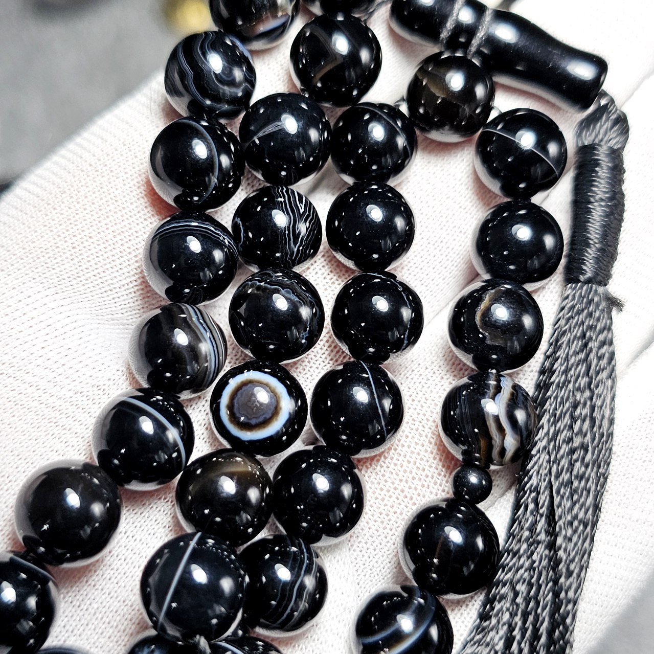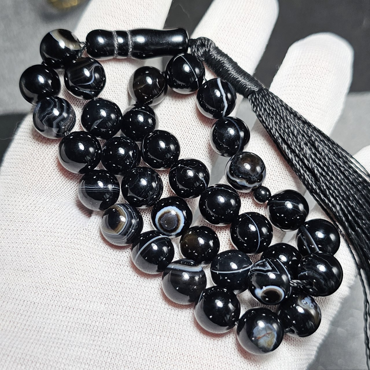 تسبیح ۳۳ دانه عقیق سیاه باباقوری معدنی
