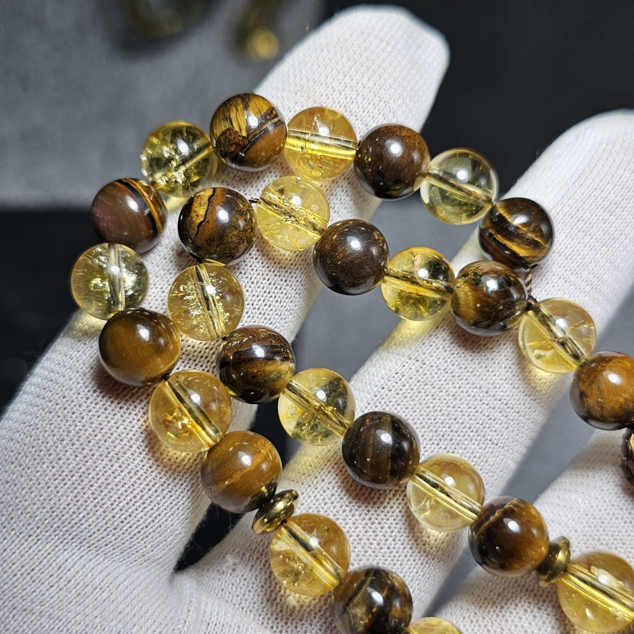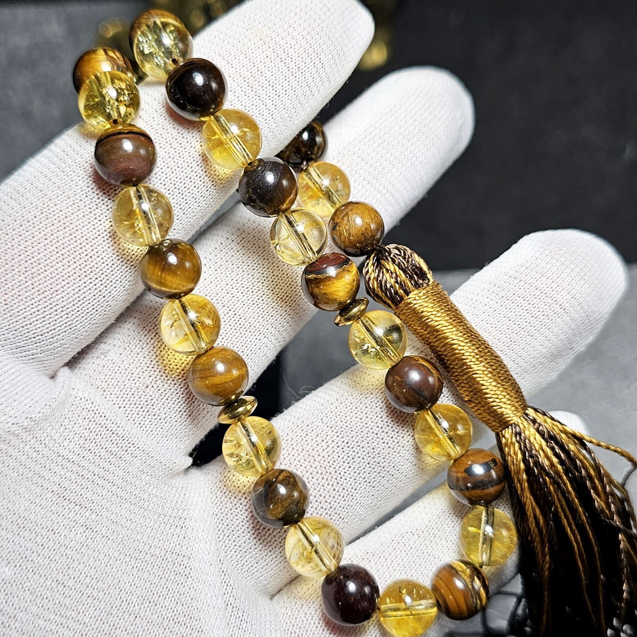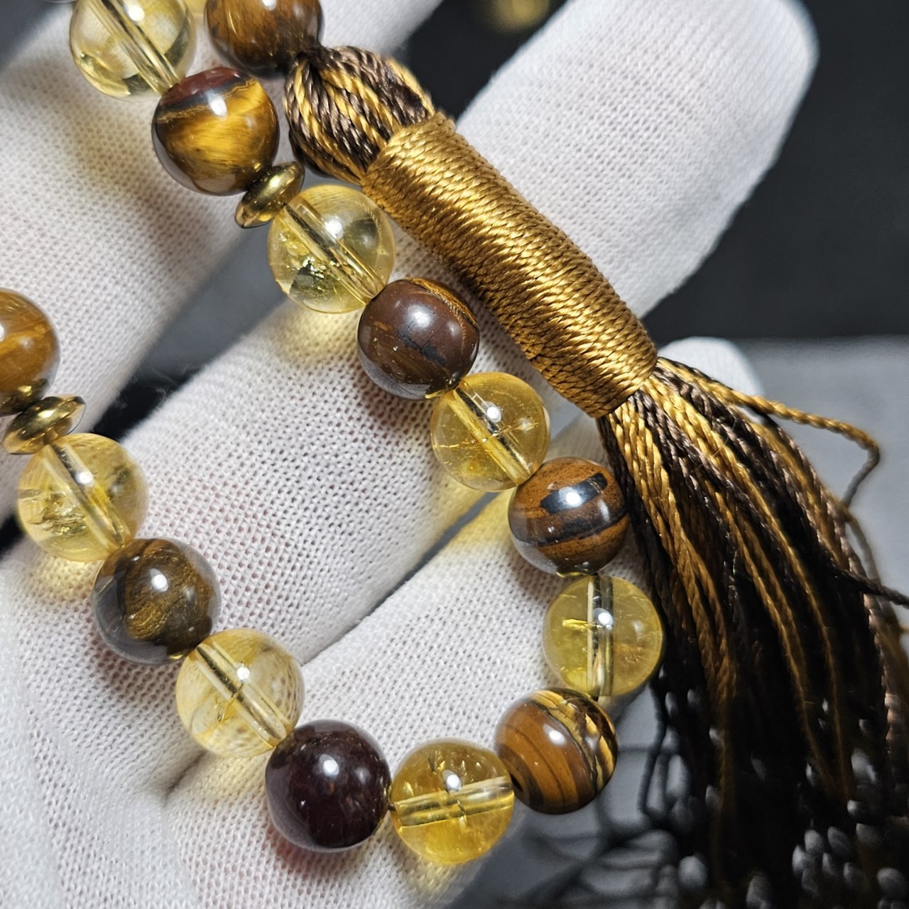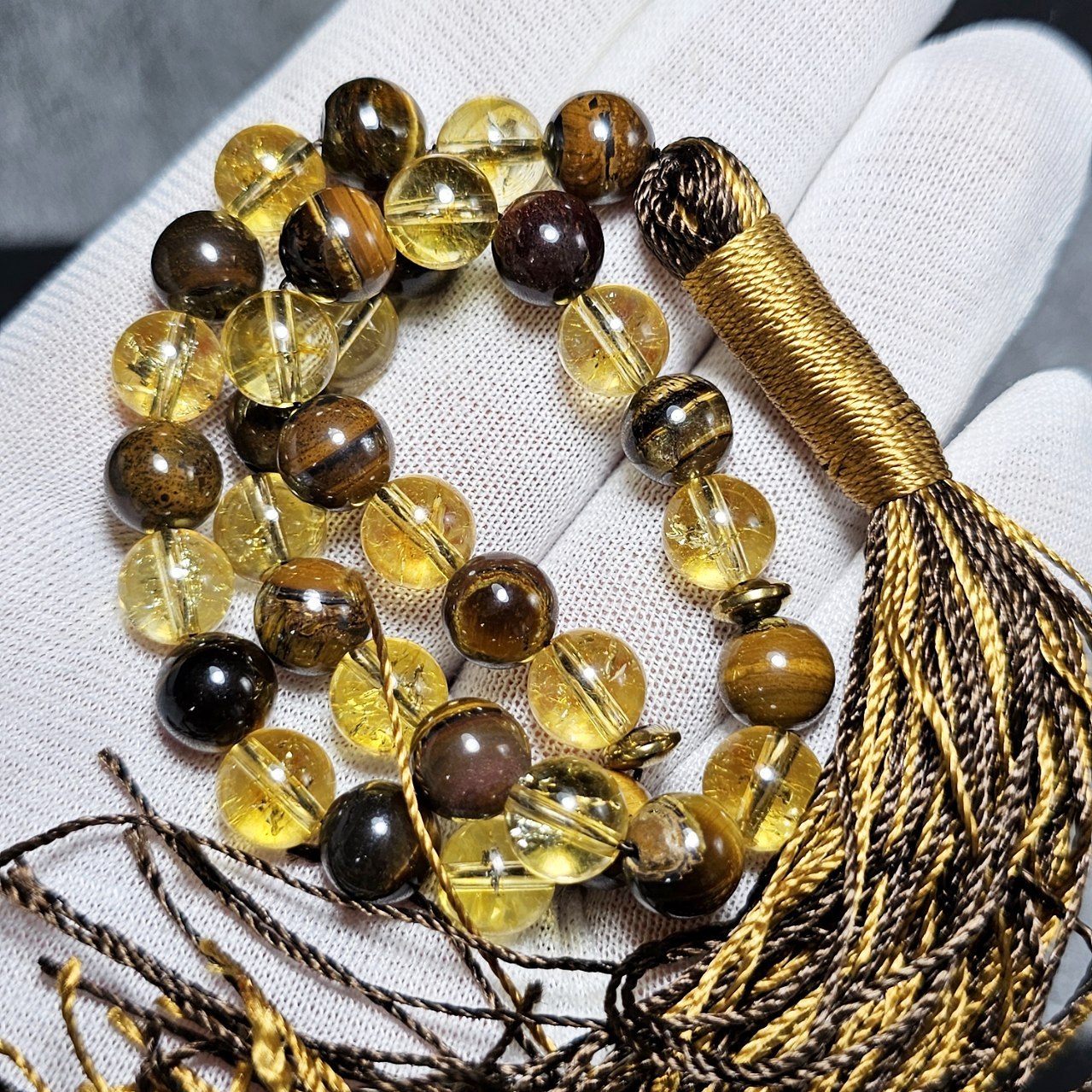 تسبیح ۳۳ دانه سیترین و چشم ببر معدنی