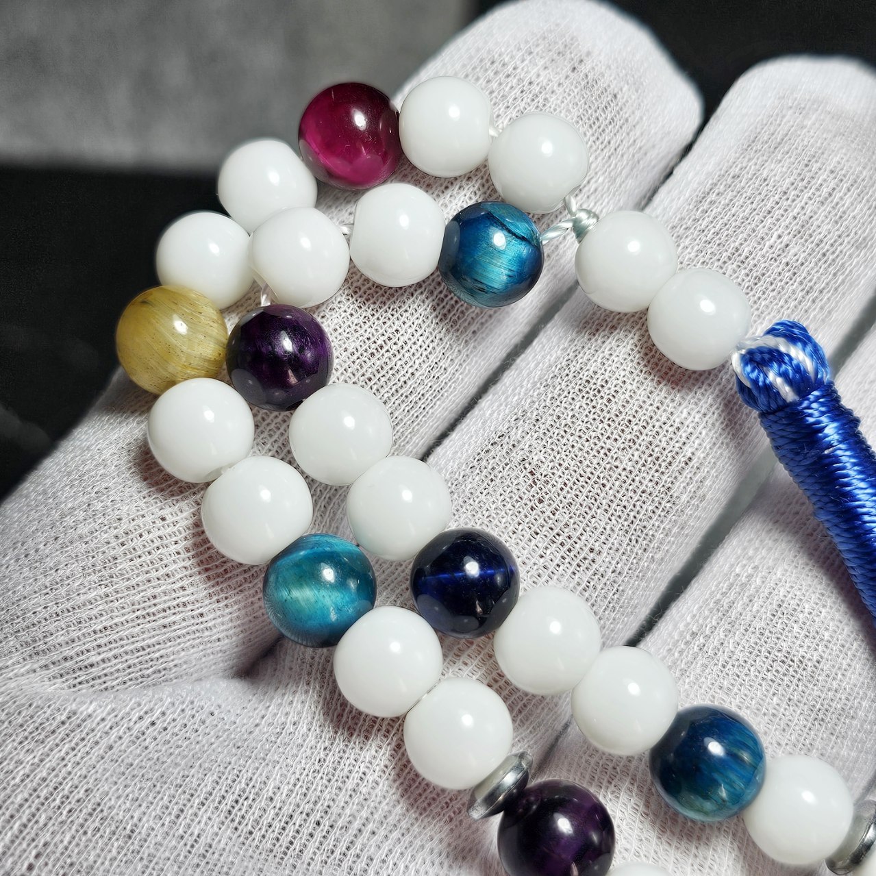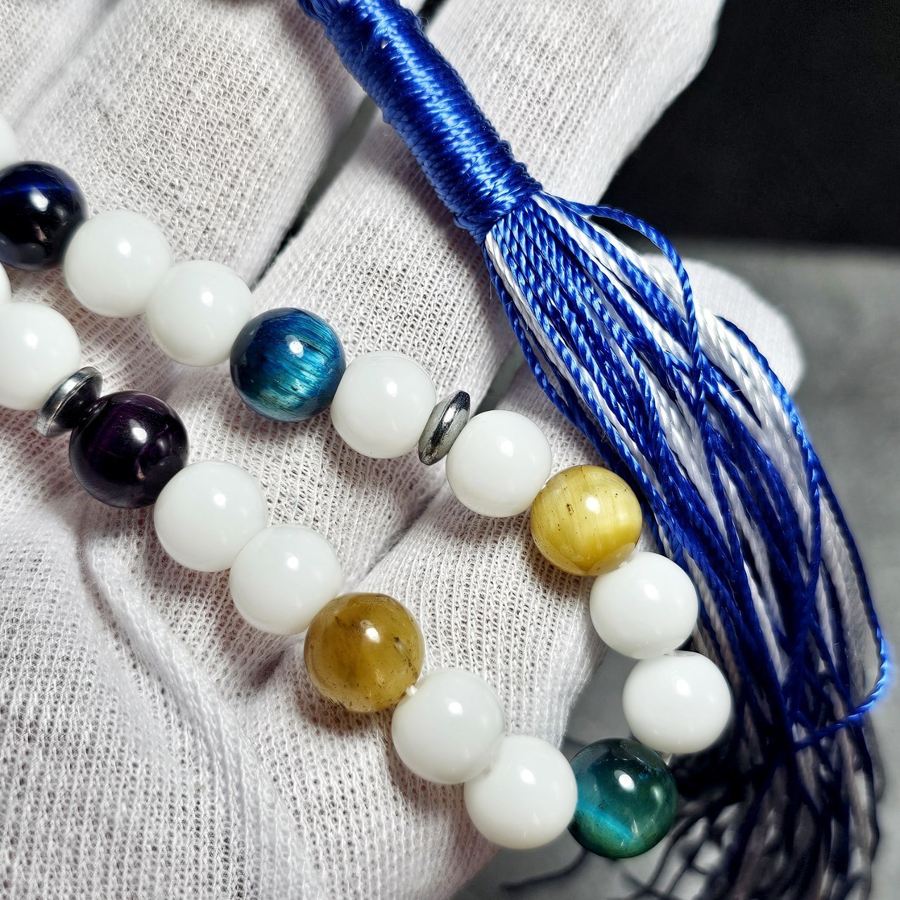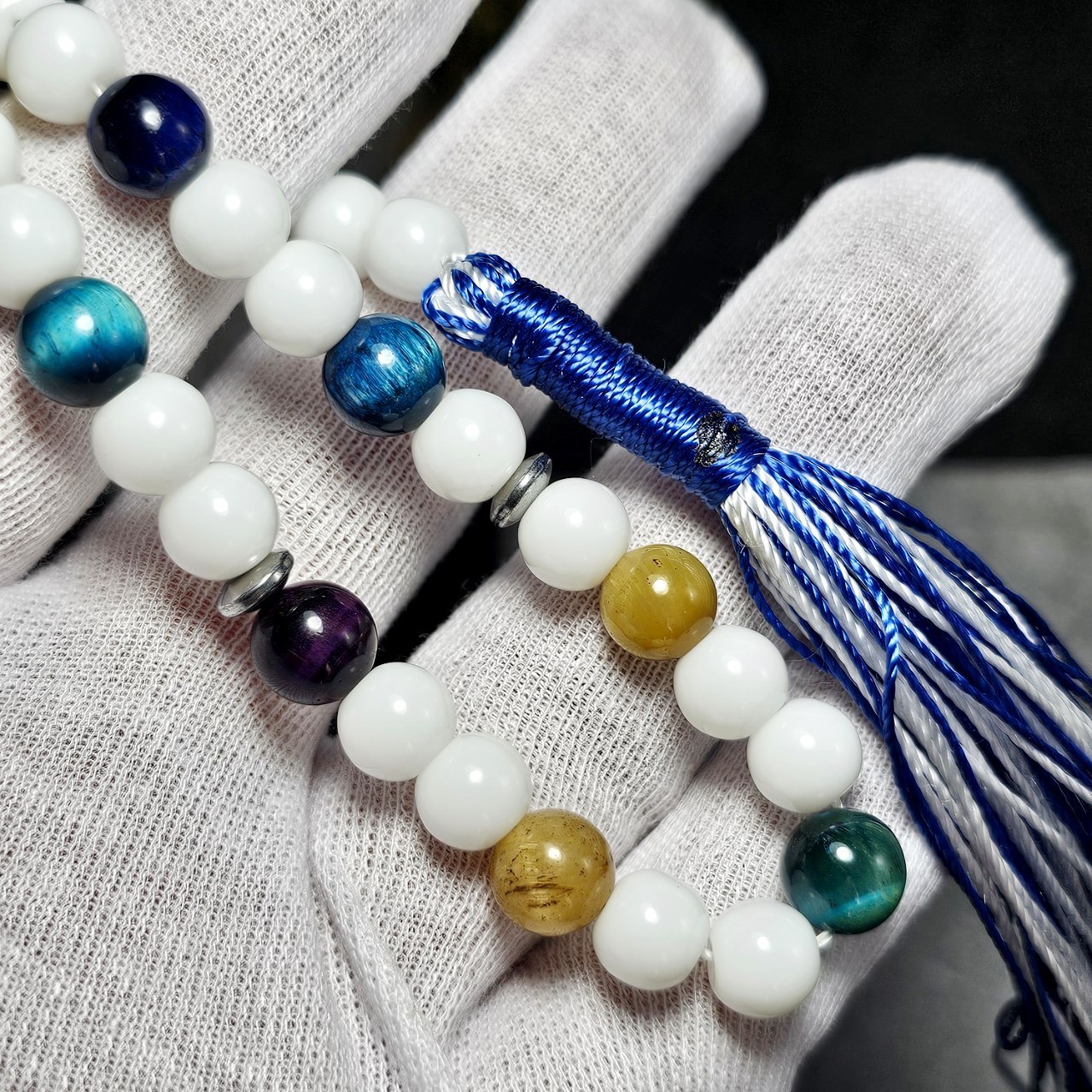 تسبیح ۳۳ دانه سنگهای اونیکس سفید و چشم ببر معدنی