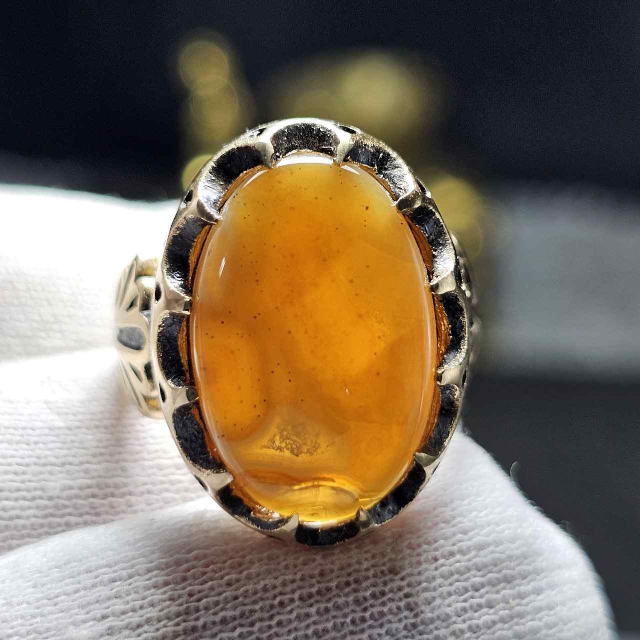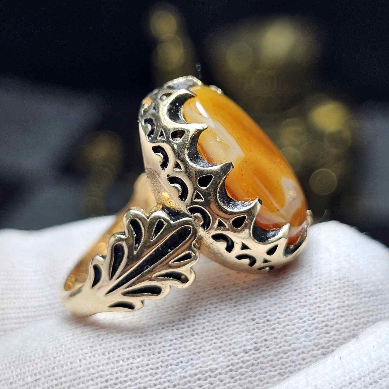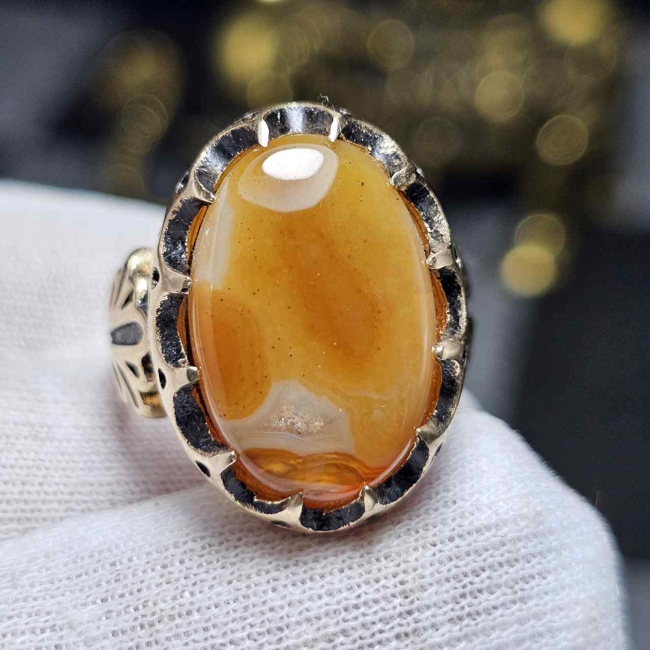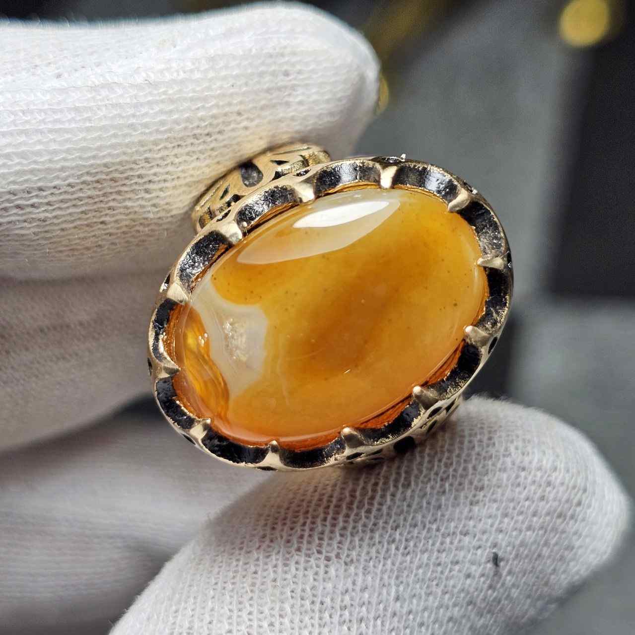 انگشتر طلا روس با سنگ عقیق جزع معدنی یمن