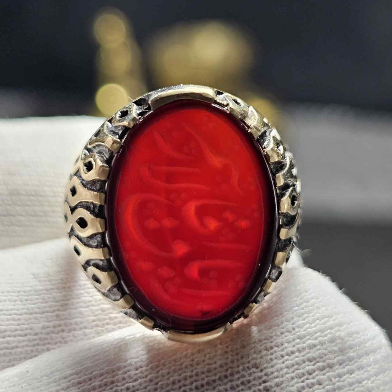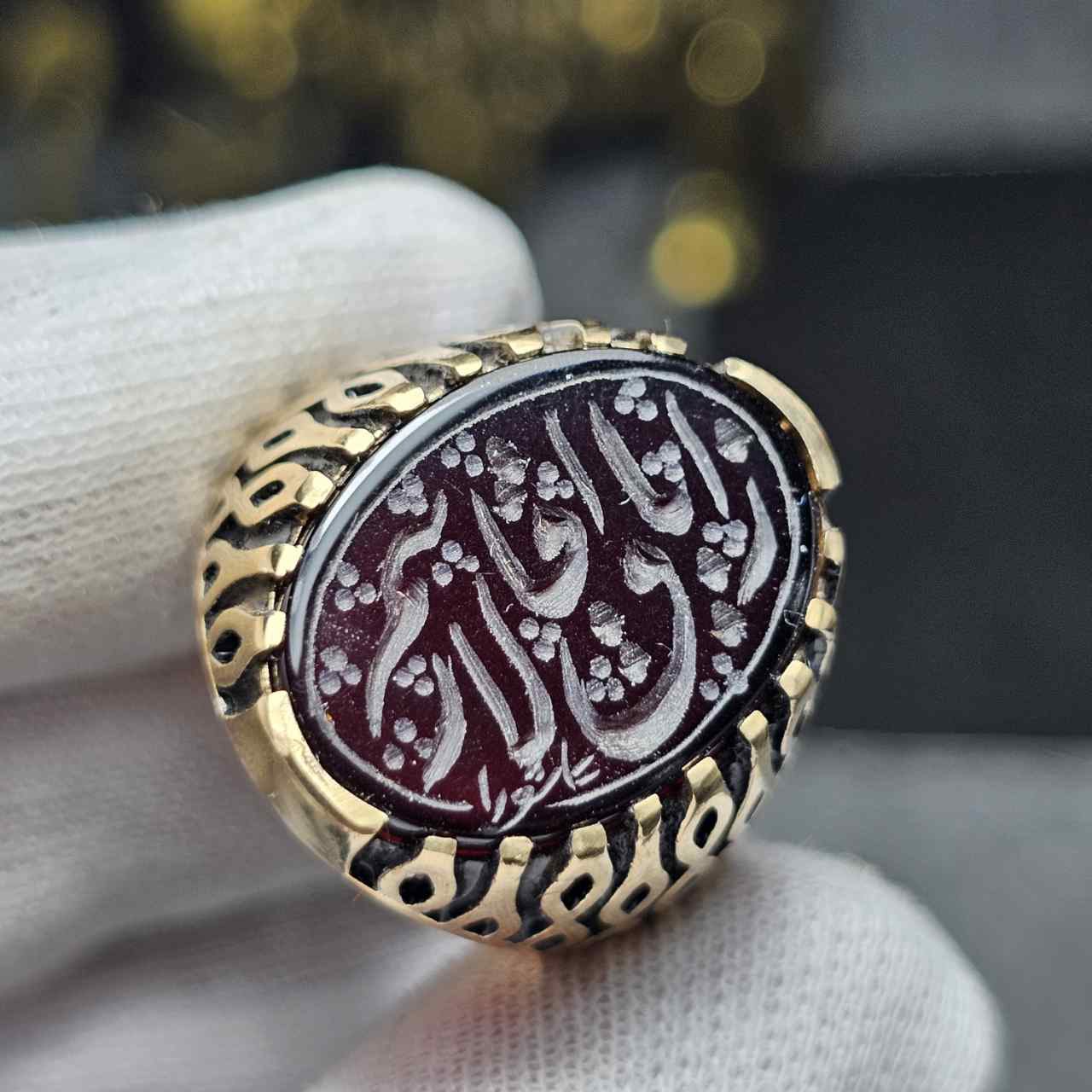 انگشتر طلا روس با سنگ عقیق جگری معدنی خط دست