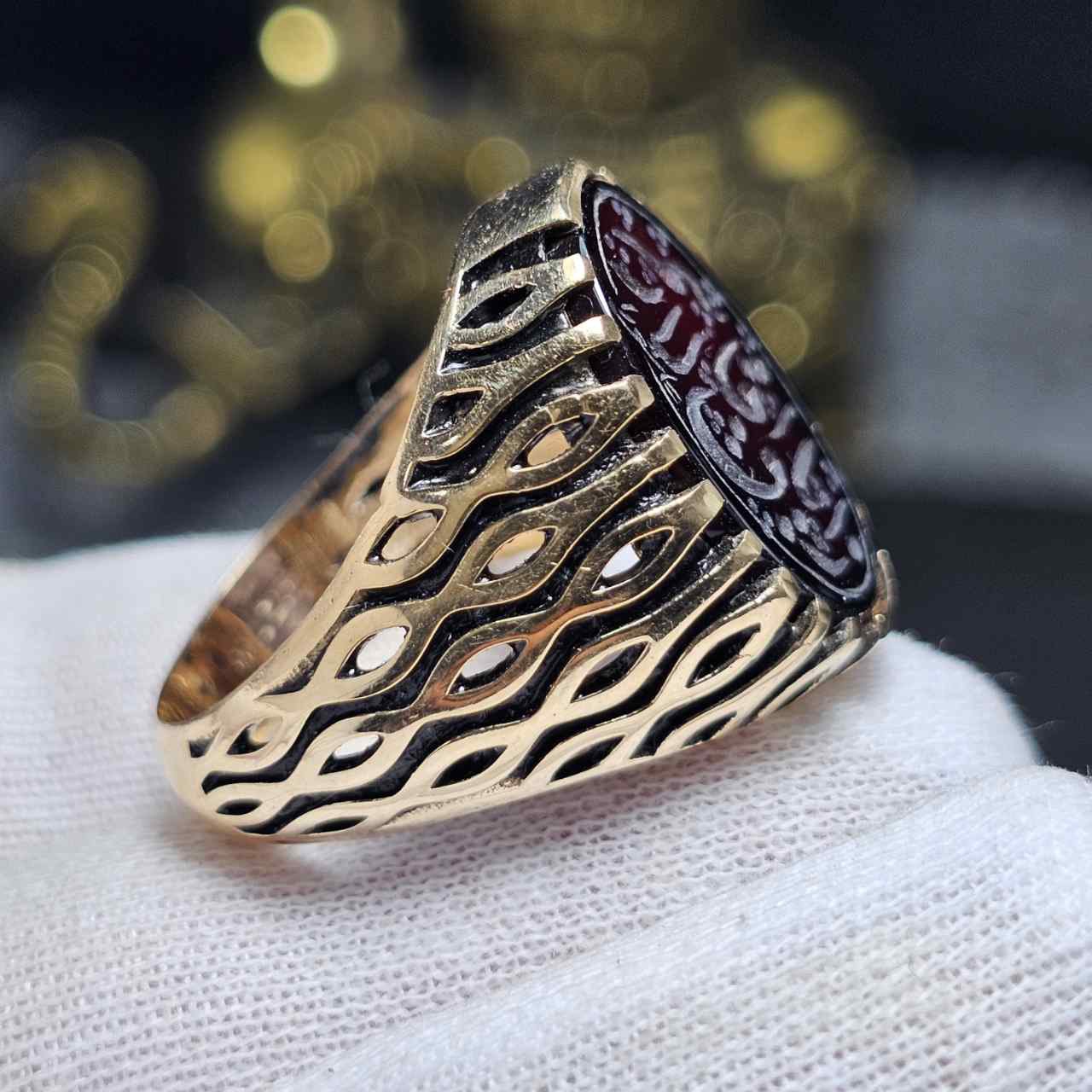 طلا روس با سنگ عقیق جگری معدنی خط دست