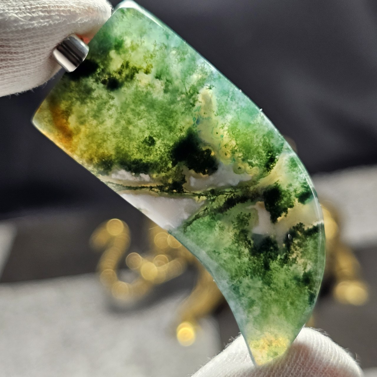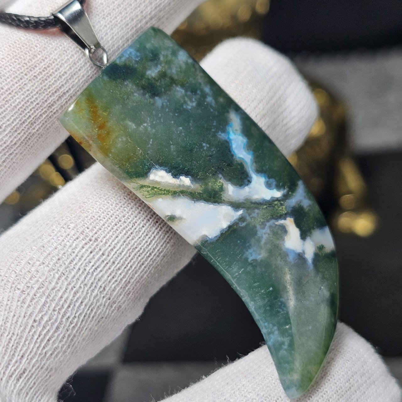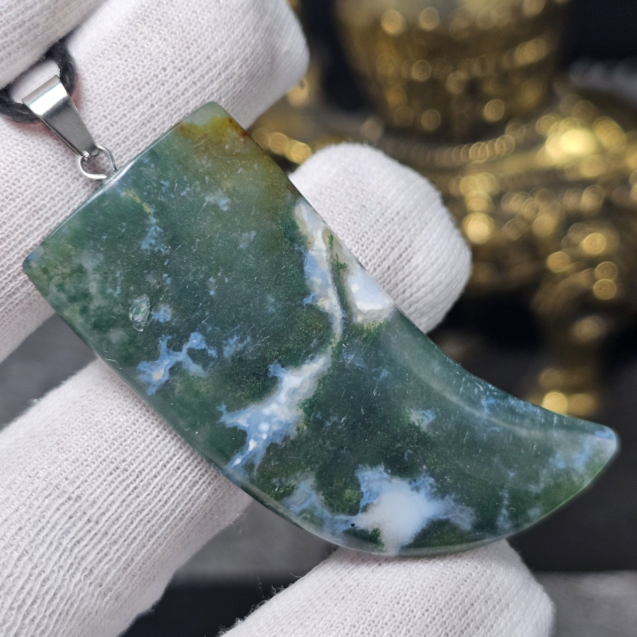 آویز گردنبند درشت سنگ طبیعی  عقیق خزه ای معدنی کد : 36621