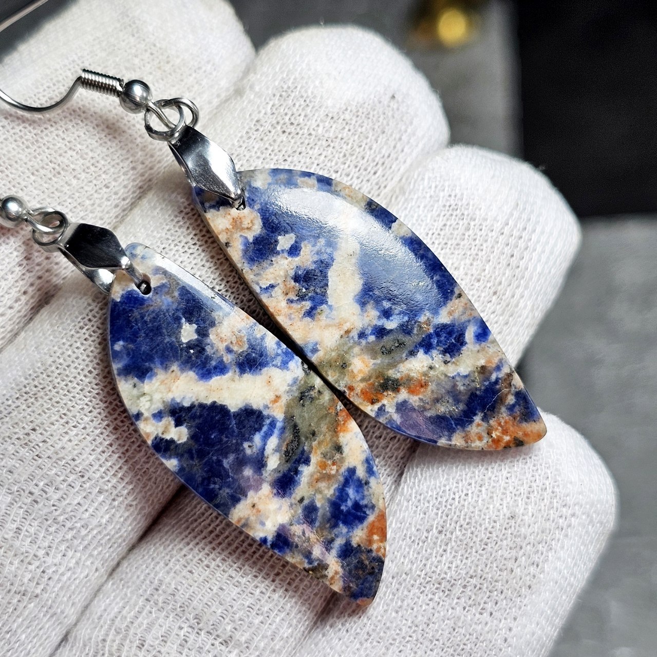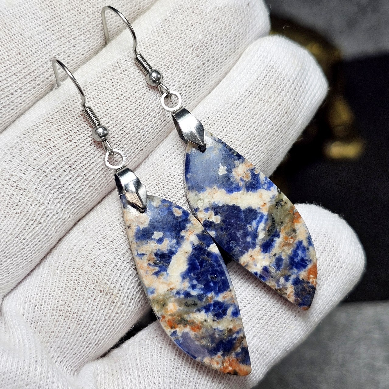 گوشواره سنگ طبیعی سودالیت معدنی کد : 36708
