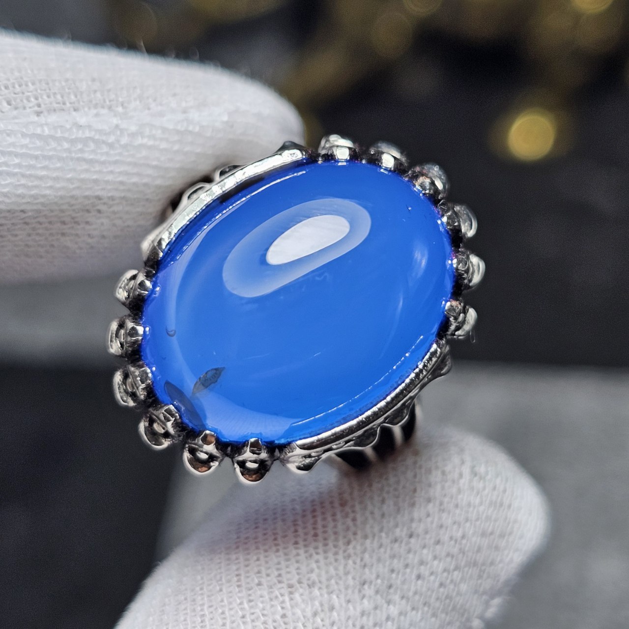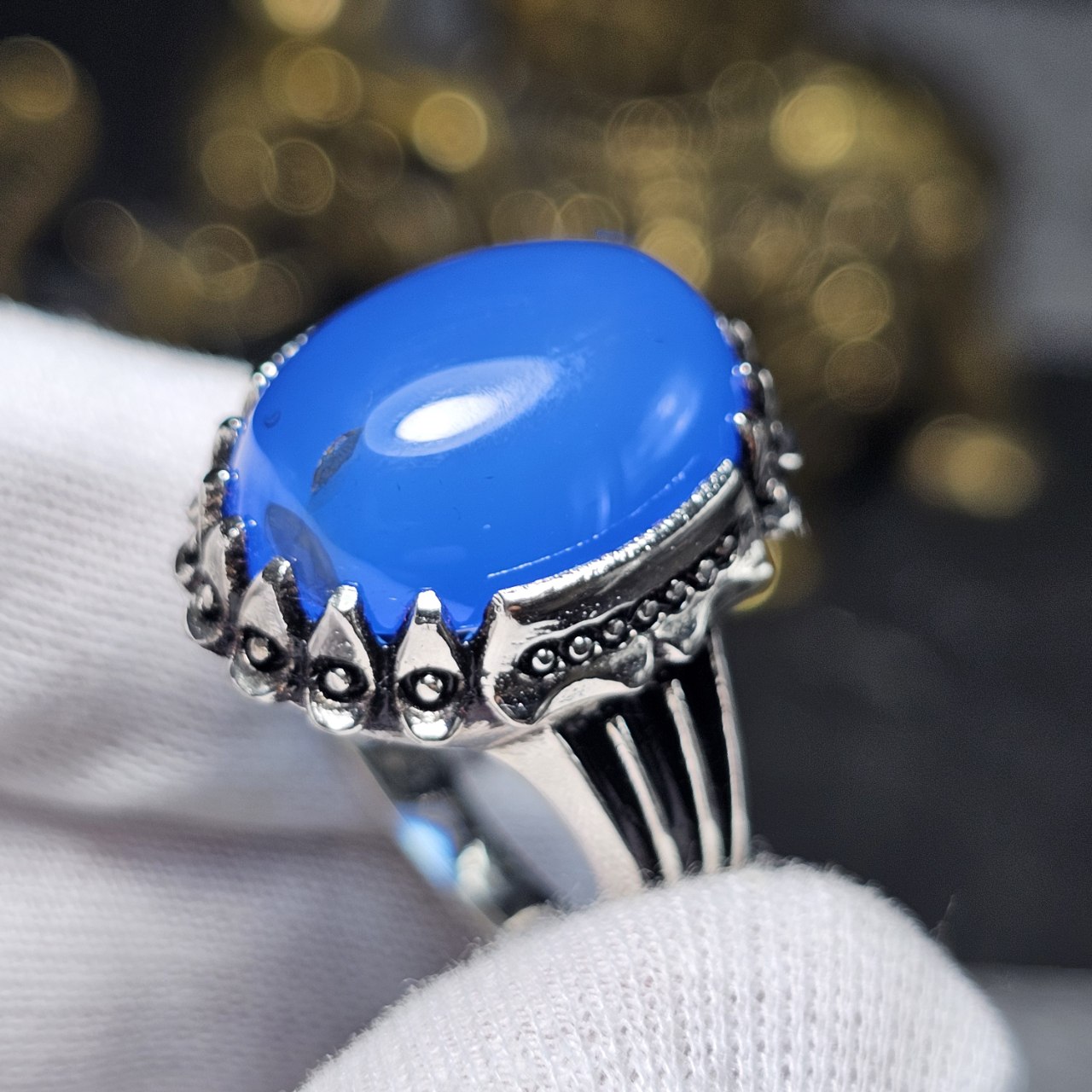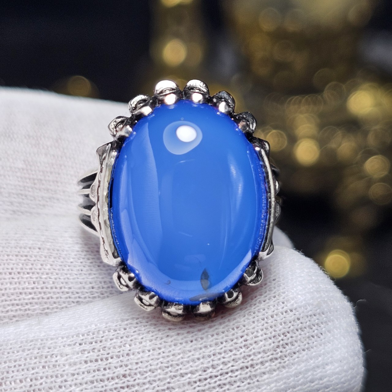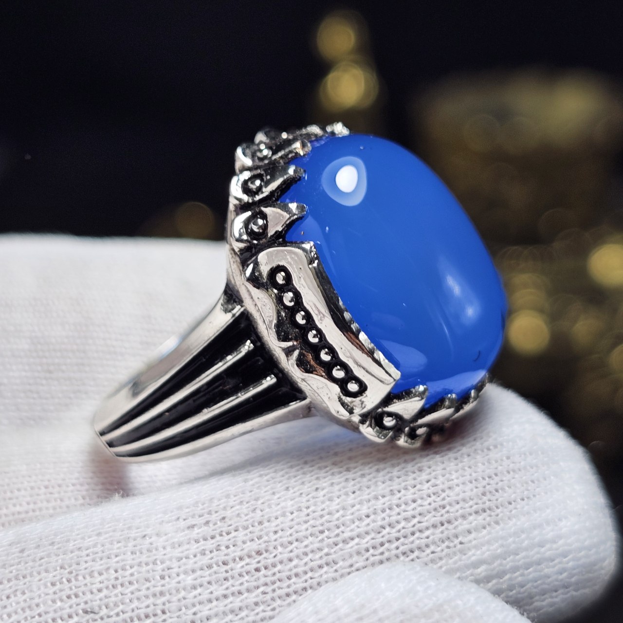 انگشتر نقره روس با سنگ عقیق آبی معدنی
