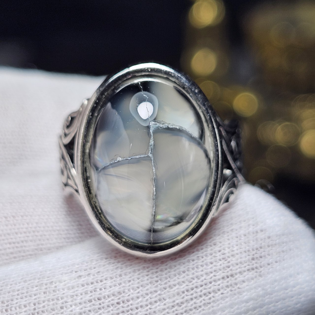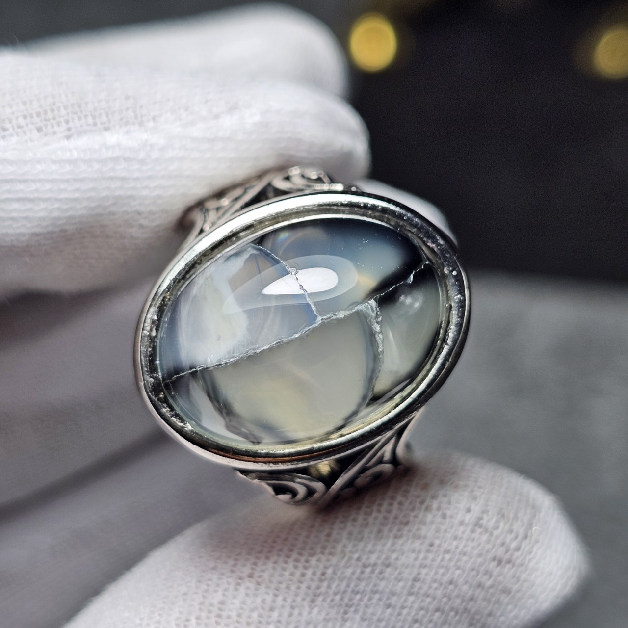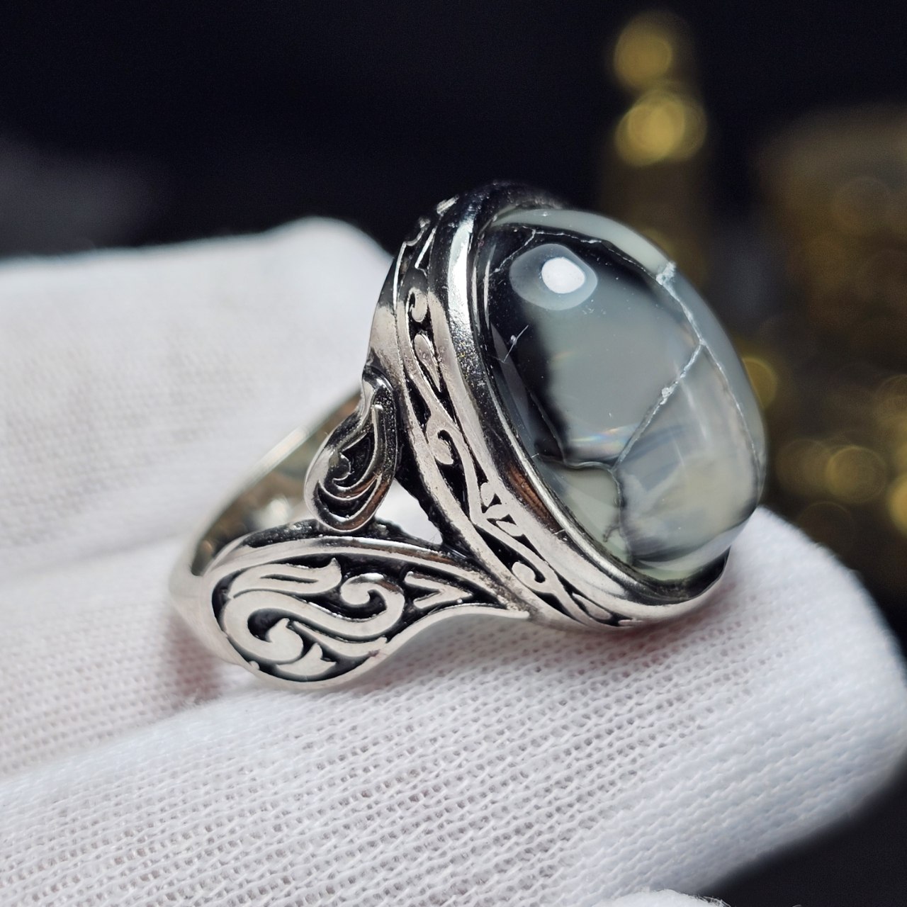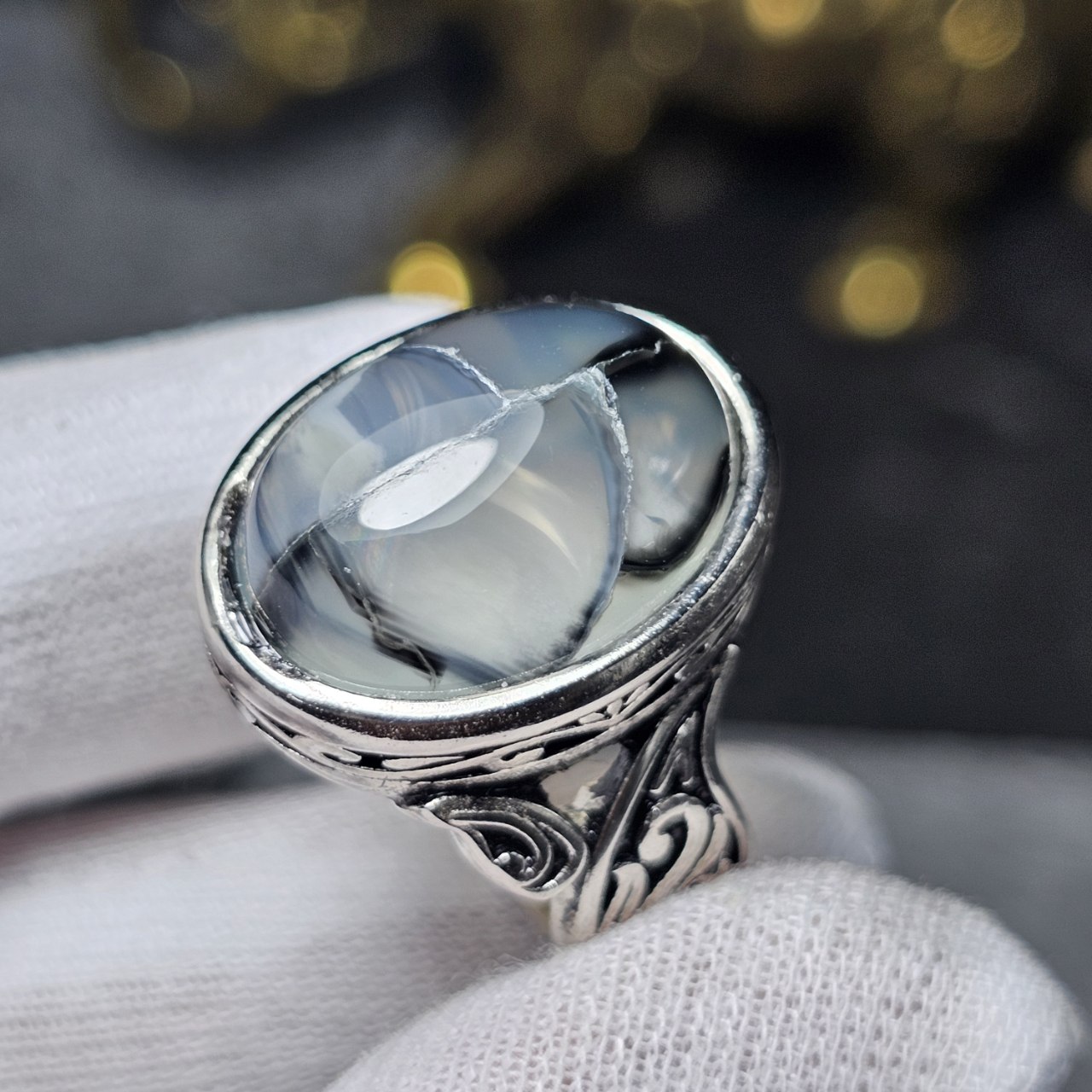 انگشتر نقره روس با سنگ عقیق دراگون معدنی ▫️کد : 37031