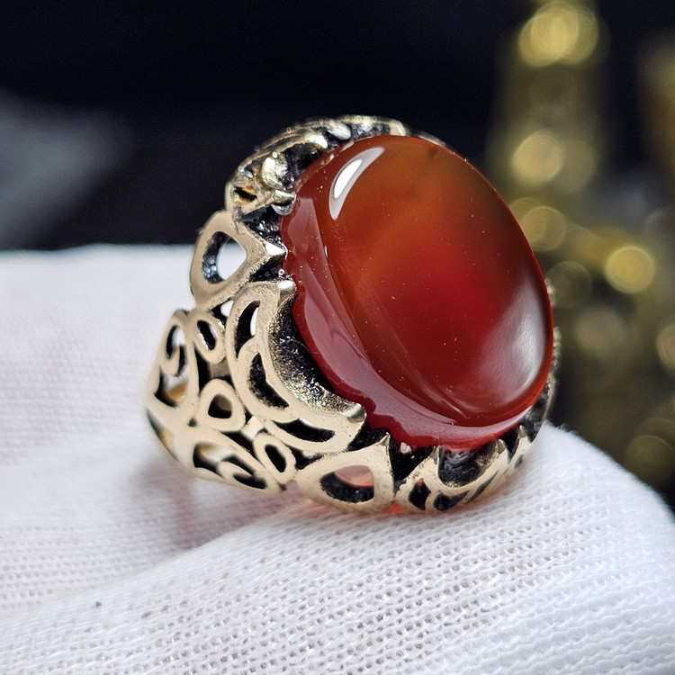 انگشتر طلا روس با سنگ عقیق معدنی