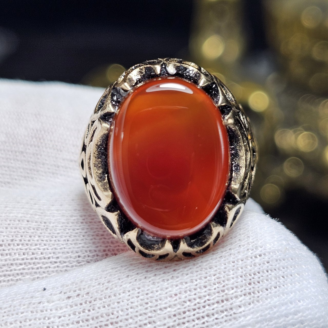 جنس : طلا روس با سنگ عقیق معدنی