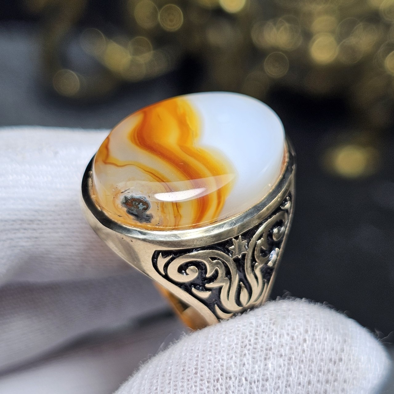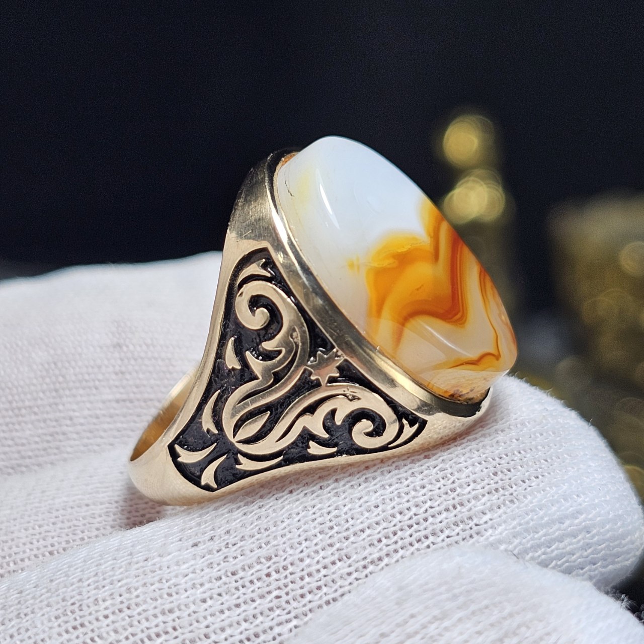 جنس : طلا روس با سنگ عقیق سلیمانی معدنی خراسانی